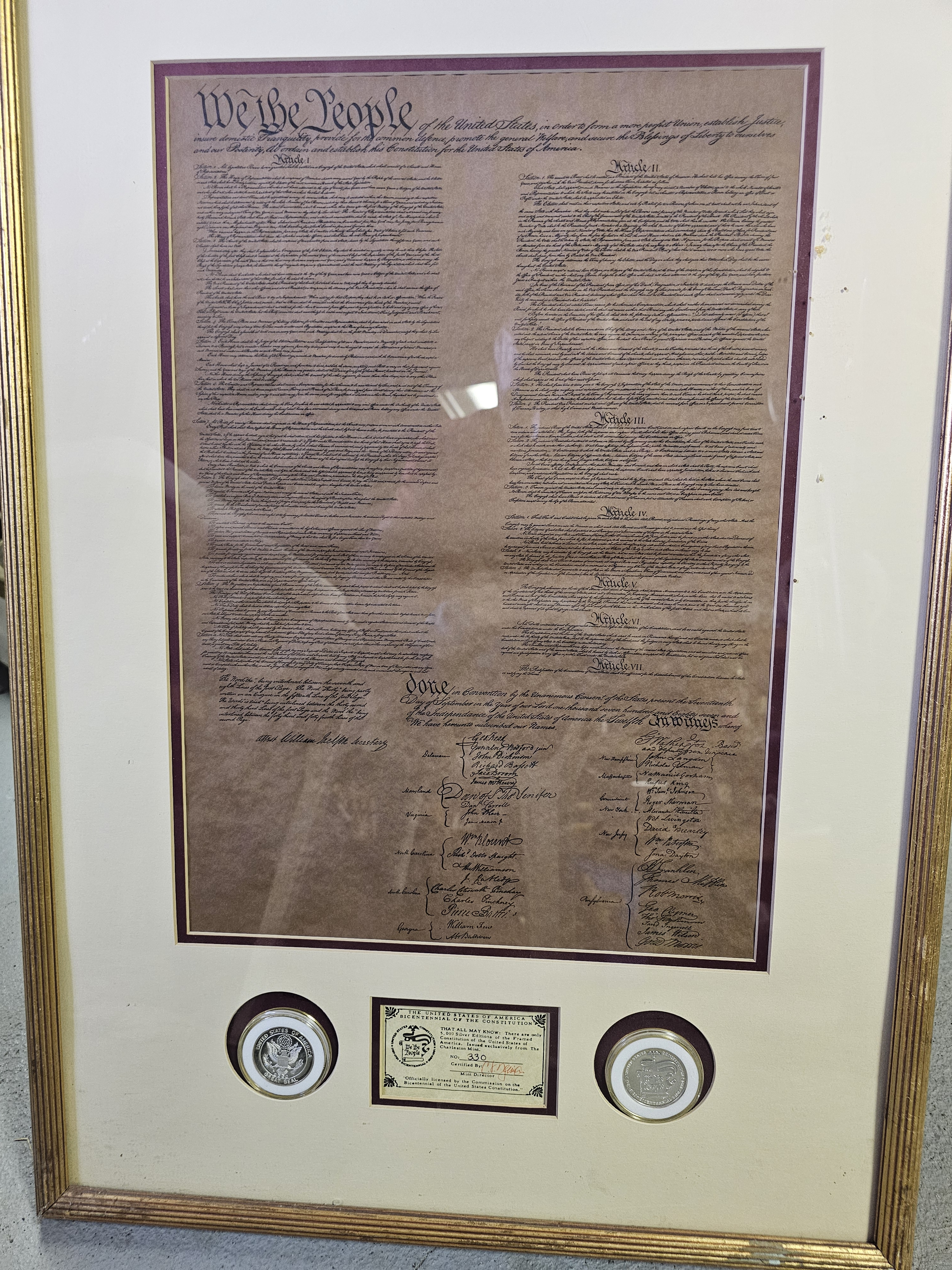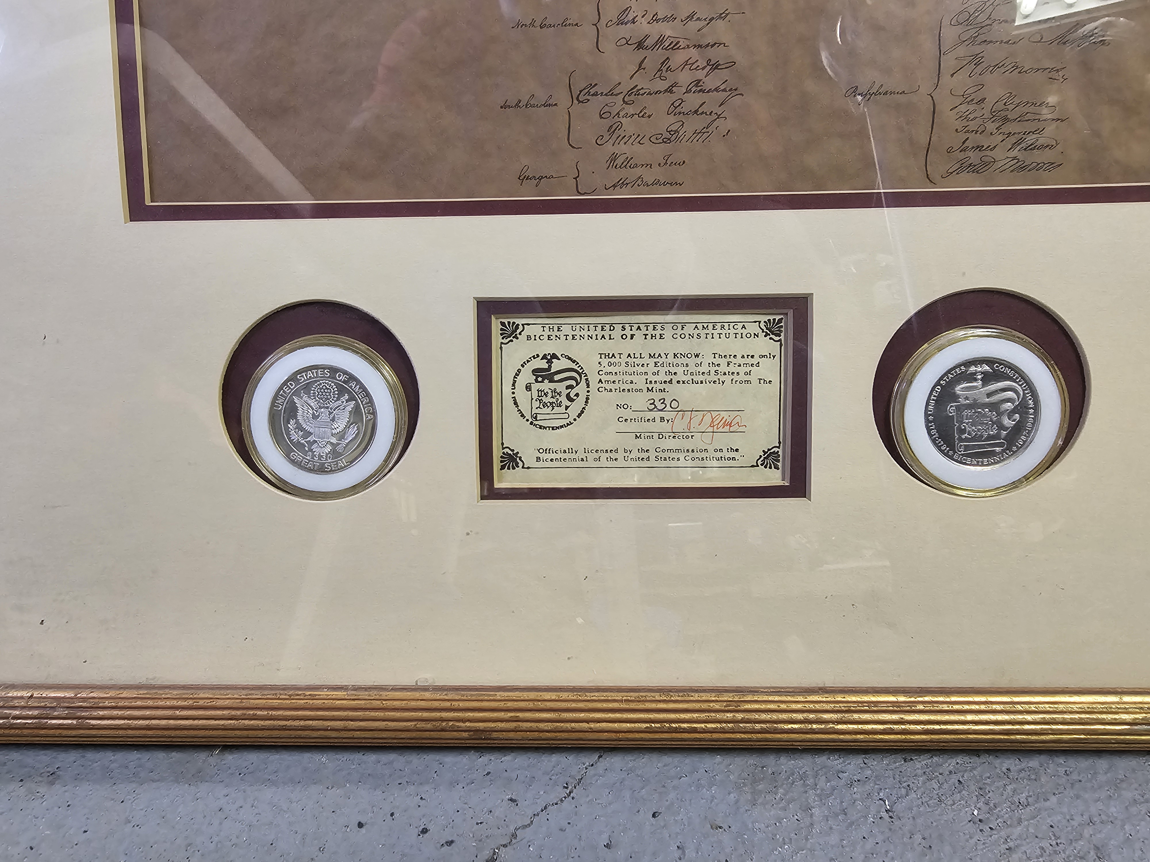 They look like souvenir framed constitution replicas to me with small medals and limited edition language to make it seem more fancy. I have a very similar constitution replica, only not in a frame and without the medals, that I purchased in Fort McHenry in their gift shop when I was about 9 years old back in 1970 or so. I still have it somewhere, I always kept it with my coin collection and that’s why I know I still have it. I don’t think they are valuable, just that they are cool and nice to look at, and very patriotic. That one looks like they fancied it up and sold them for the bicentennial would be my guess.