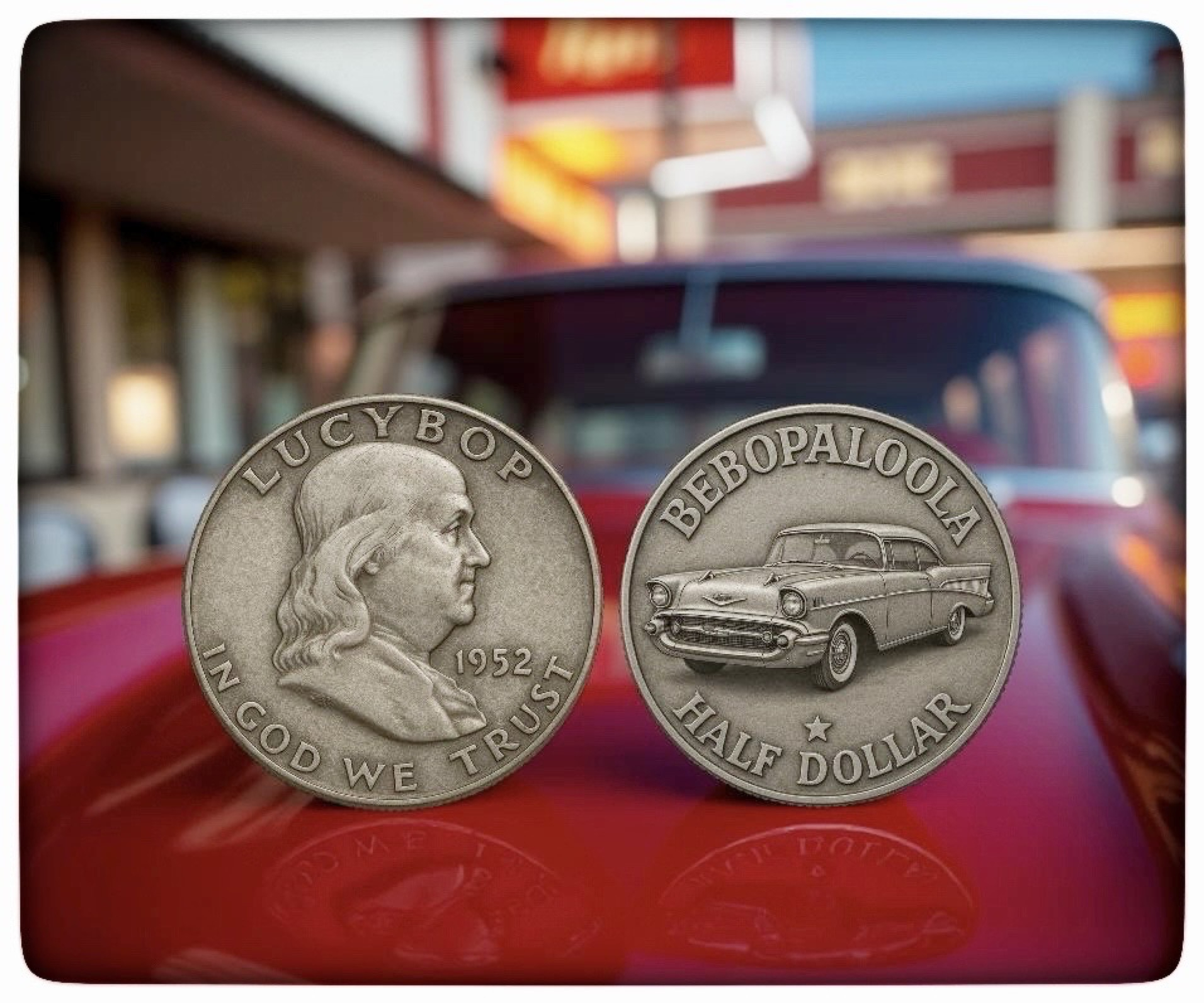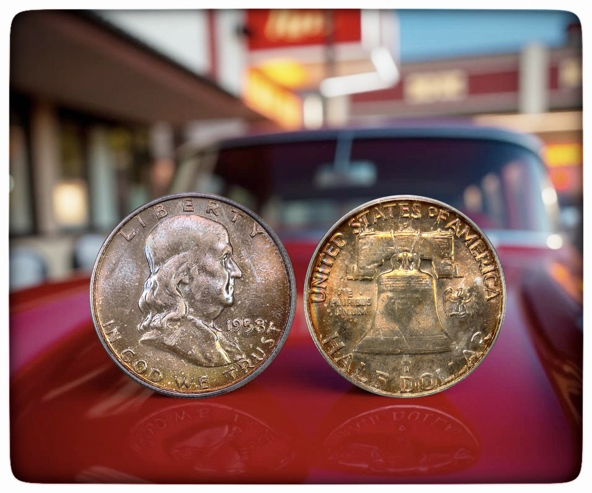 Yes, I could have done so, even thought about it, but I didn’t. I was actually in a hurry that day, and I thought it came out nice enough on the first try. But I could have simply added “The date on the Franklin Half is 1957” to the prompt and it would have done it. Later I went back to it, but instead of tweaking the AI, I turned it into a Franklin half template to use for real photos of Franklins, here’s a few examples