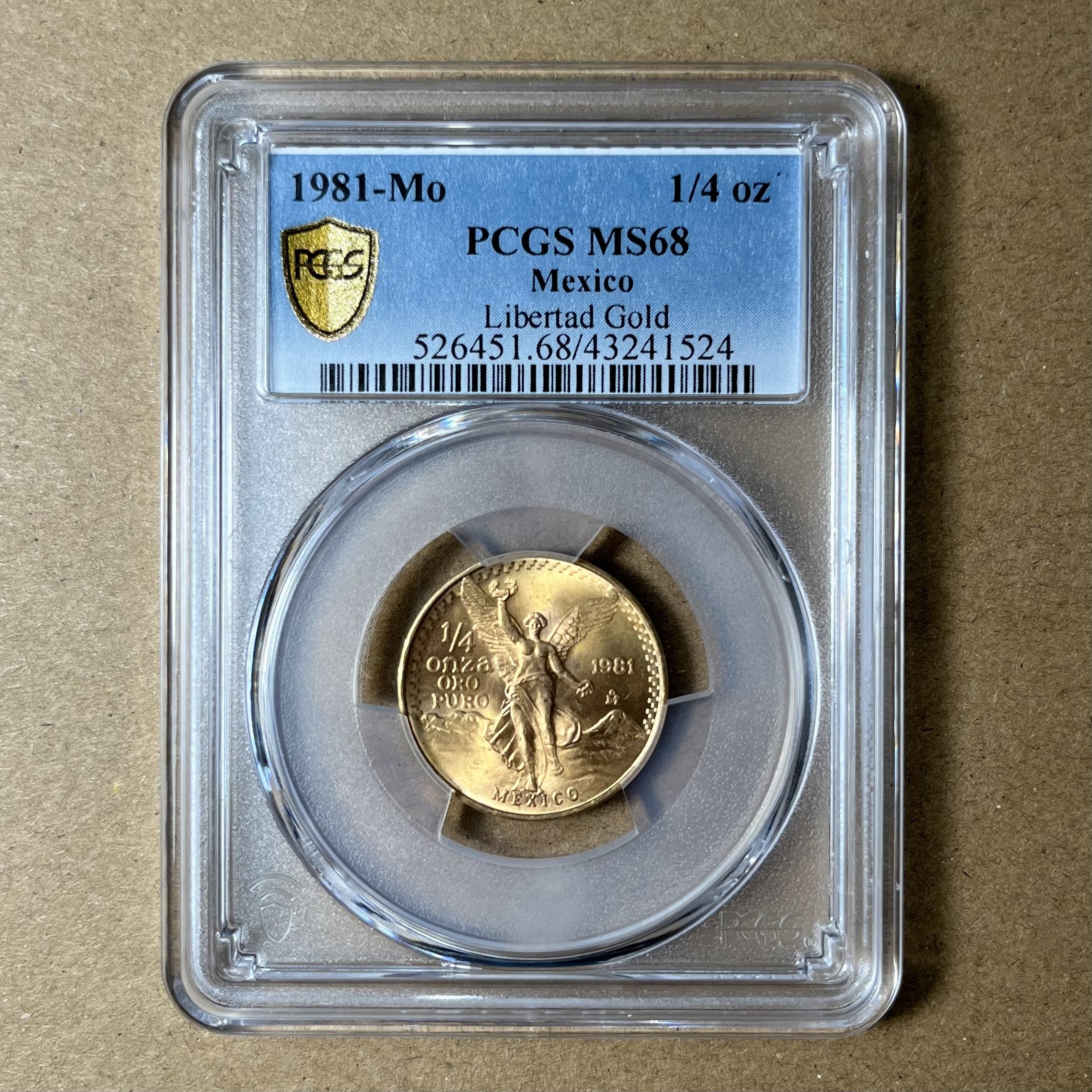CDN CPG $1650 on the 1/4 oz PCGS 68 1981 gold Libertad Mexico coin. Really like it, super nice coin. Many of these are low pop. Very strong for investment. Tough to find too. Would want a slabbed stack of about 6 of them.