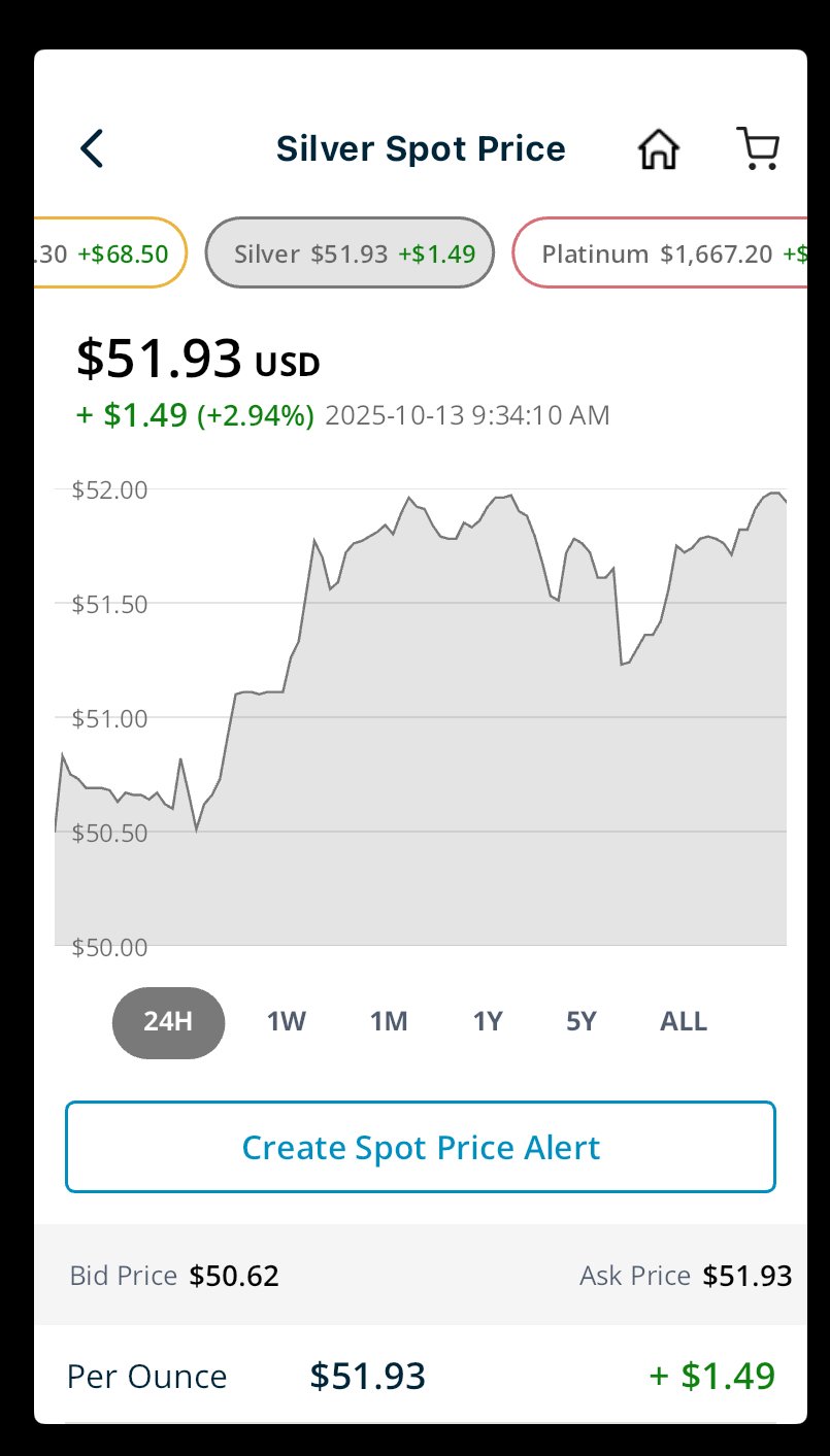 Check Monumentals buy prices recently? You'd think with this unprecedented demand, perfect storm whatever they want to call it malarky they would be offering a little better than -$2.75/oz under spot? Typically offers like this suggest many more sellers than buyers. Just sayin.