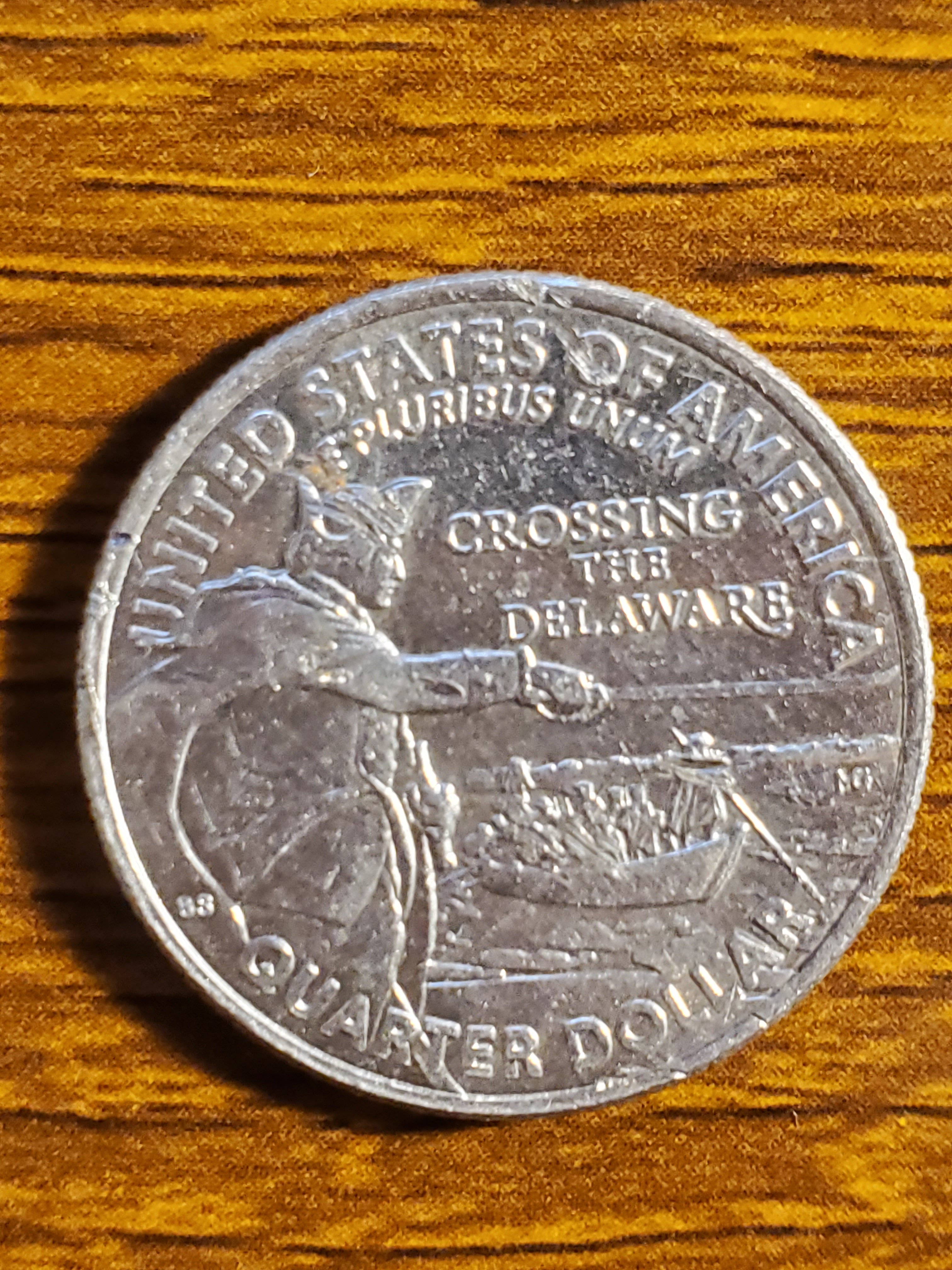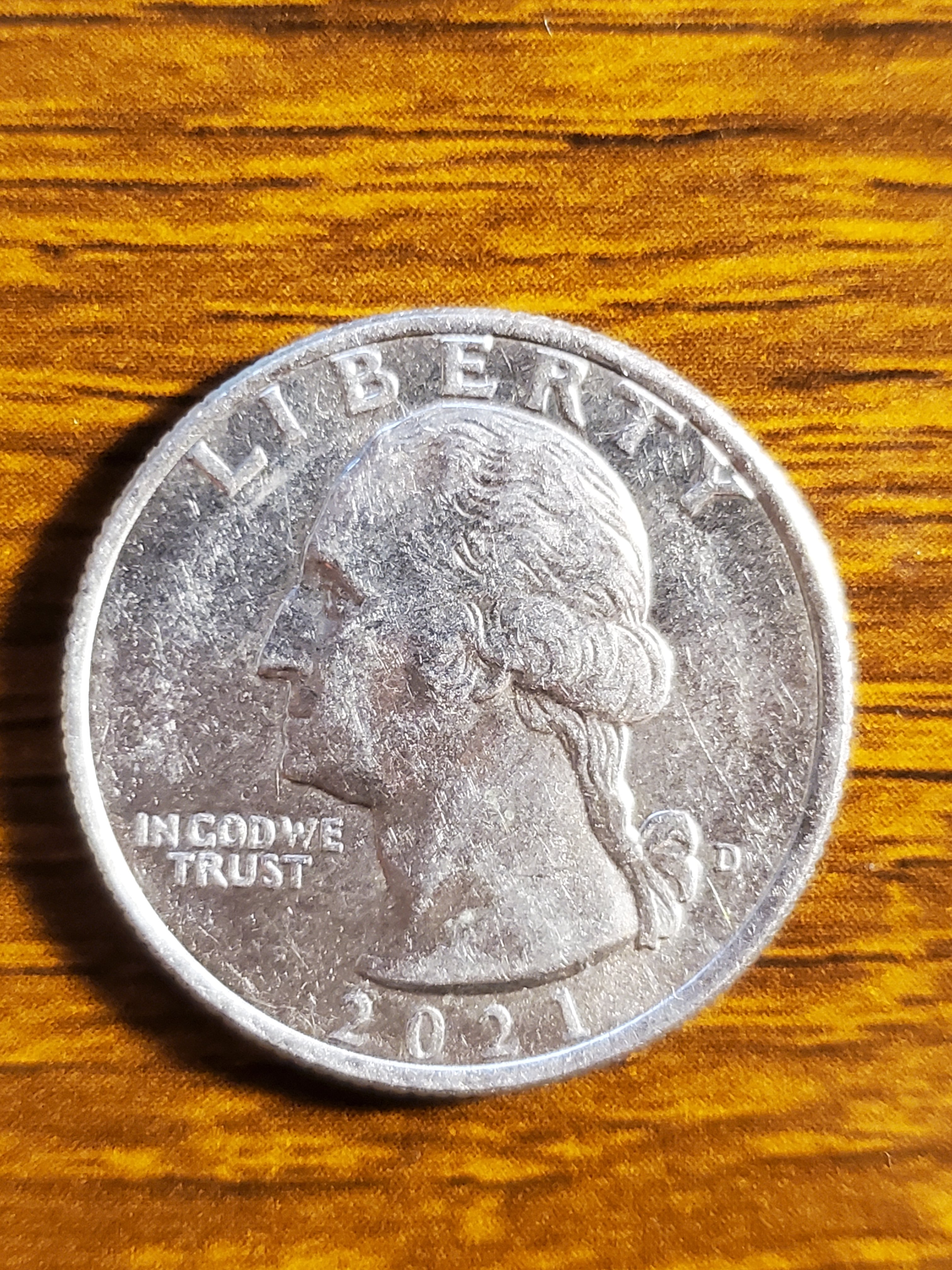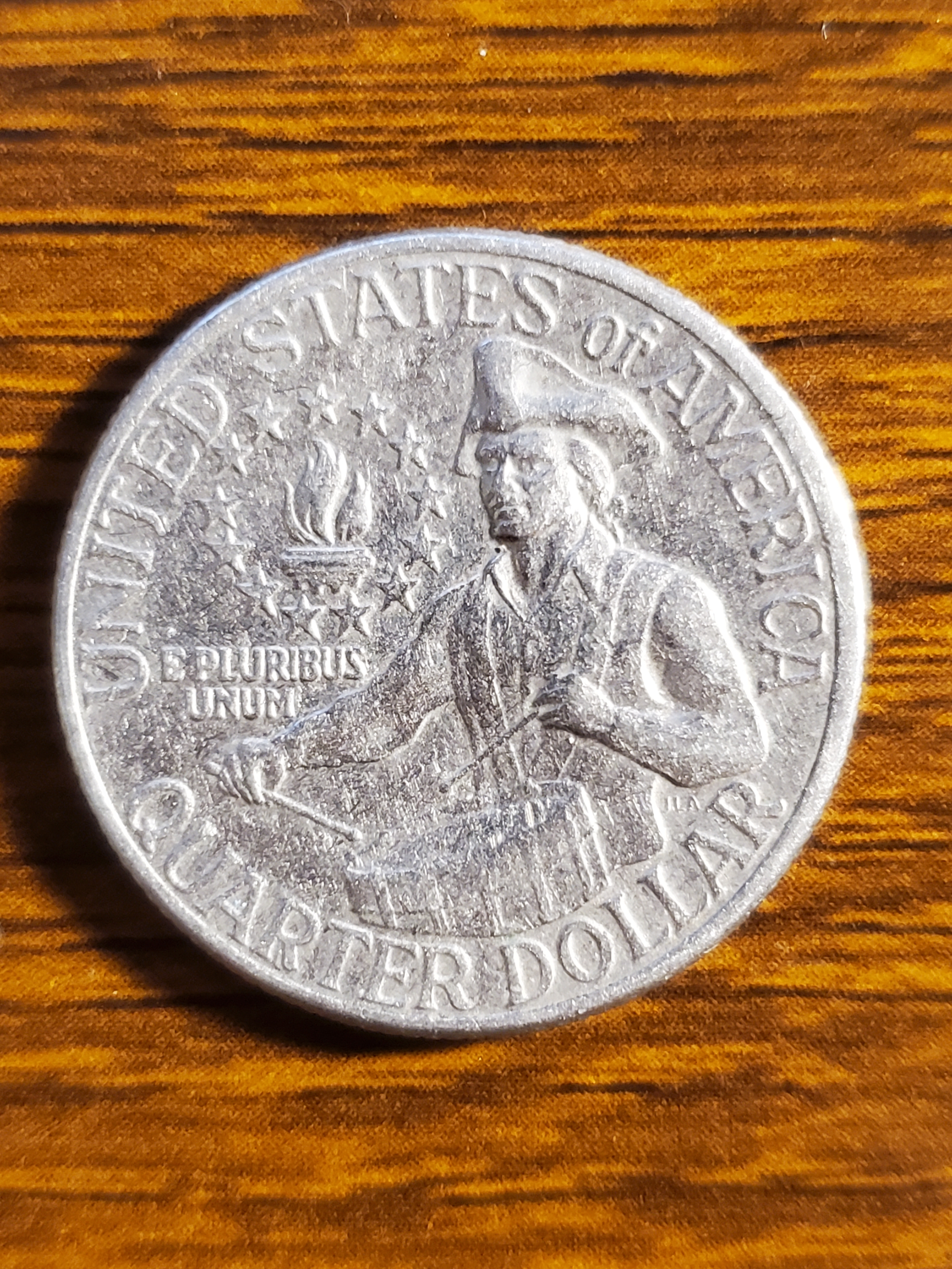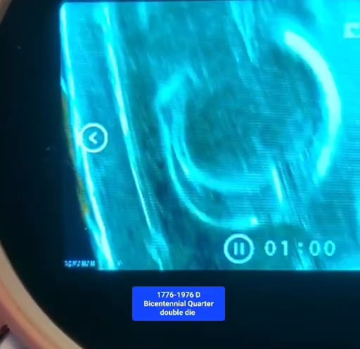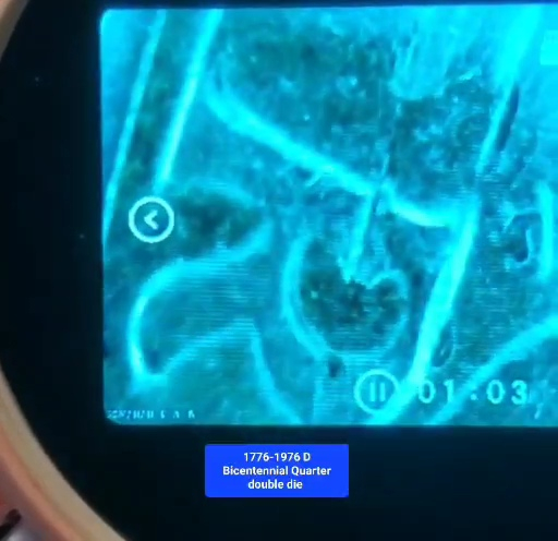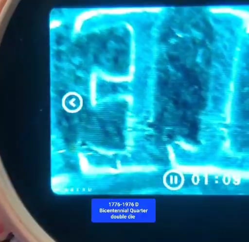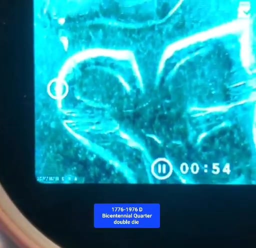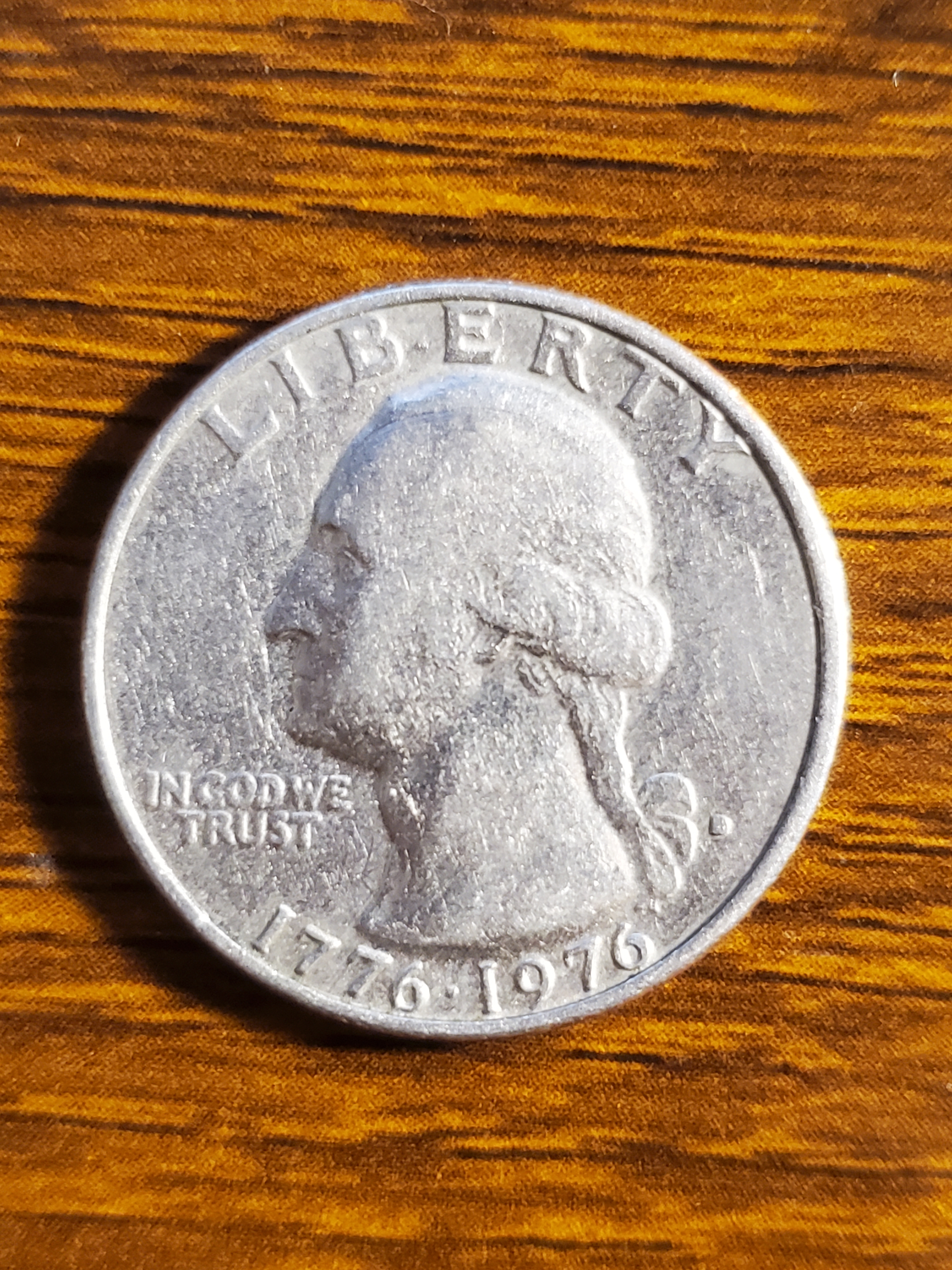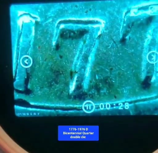 • 1776-1976 D Bicentennial Quarter double die. There's also a line cutting across all the letters all around the coin in a circle, and lines on the hat.