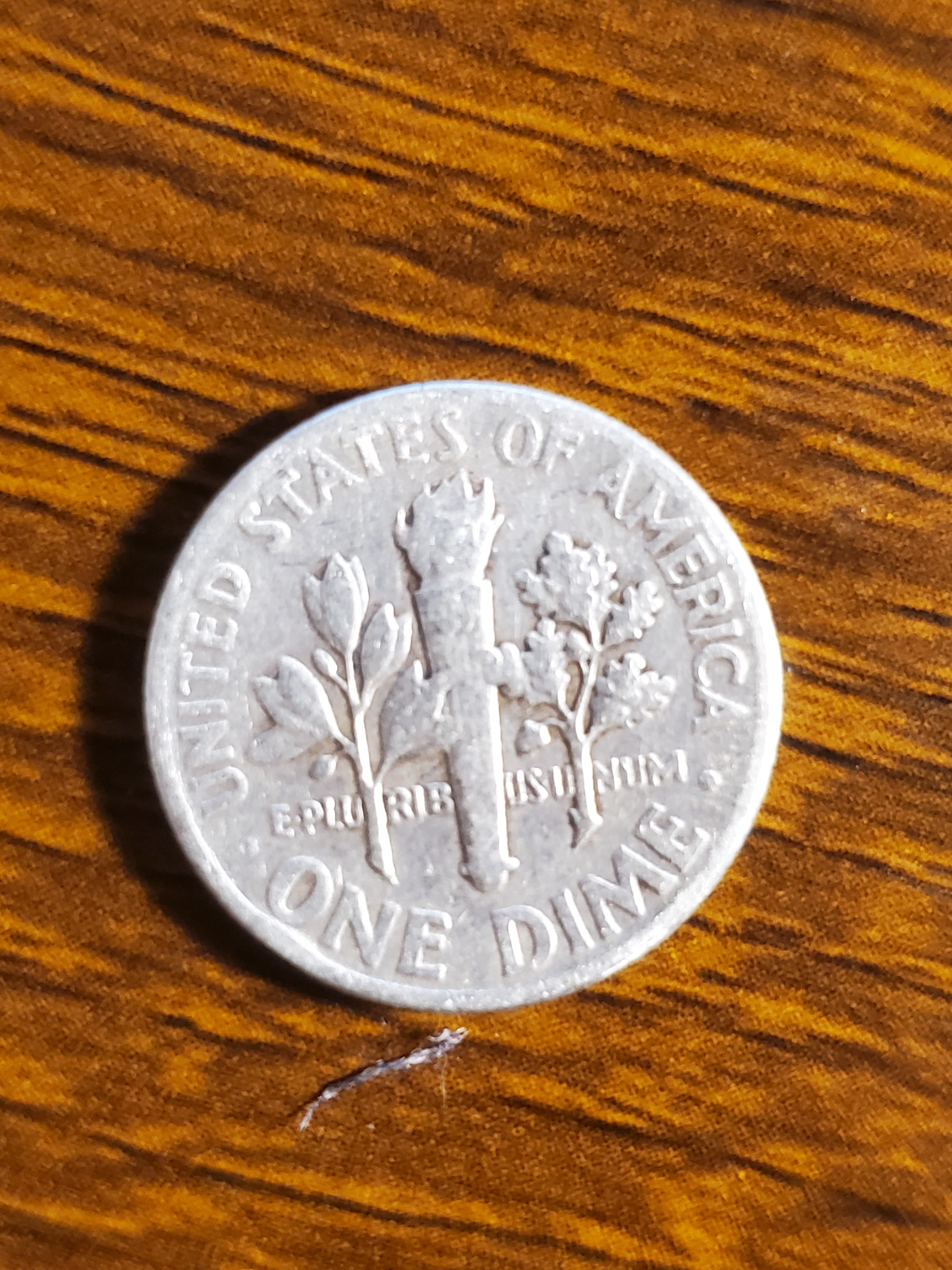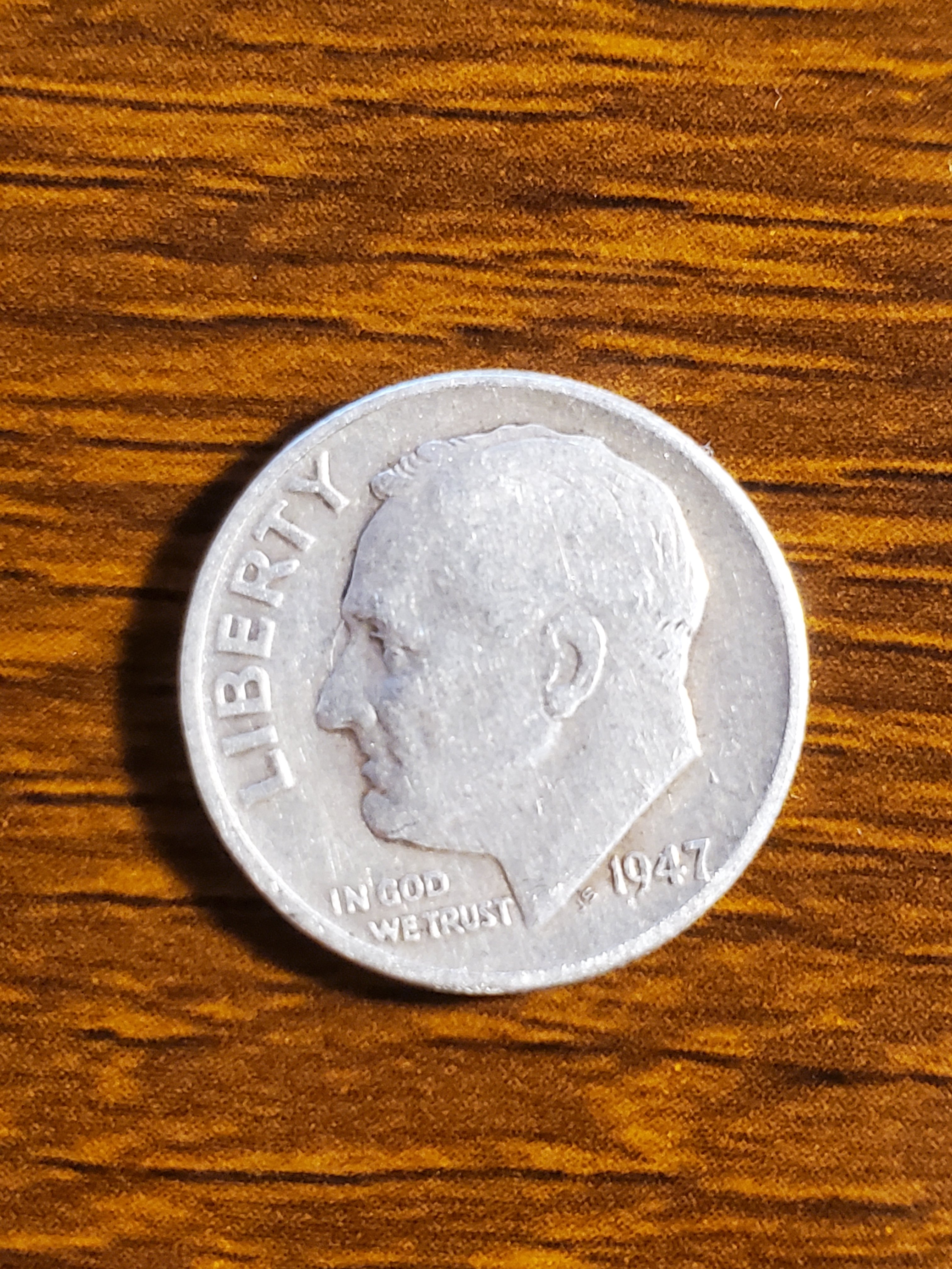 • 1947 Silver Roosevelt dime no mint mark double die. Silver around entire ring and weighs 2.5g.