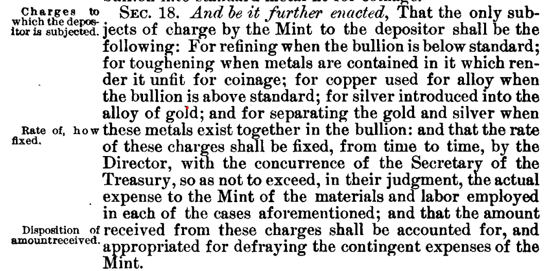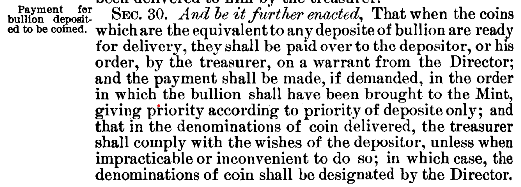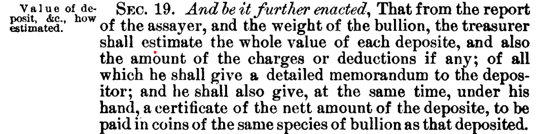 Note that earlier acts provided for deductions if you wanted your deposit paid faster than it could be coined.