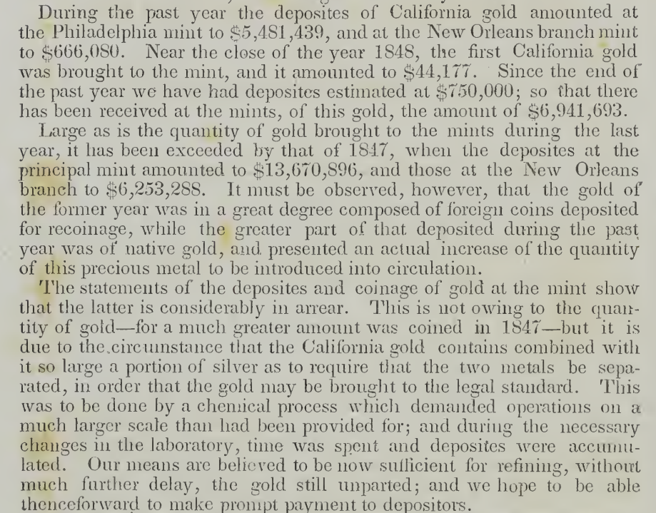 I always thought it was inconsistent that it was too expensive and arduous to transport gold from GA/NC to Philadelphia but then all of the sudden it was no problem at all to transport gold from California into GA/NC.