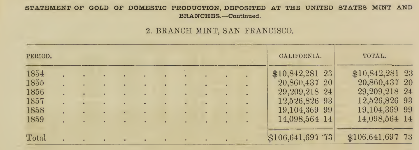 Perhaps the most interesting is 1850, because that includes the first California gold
