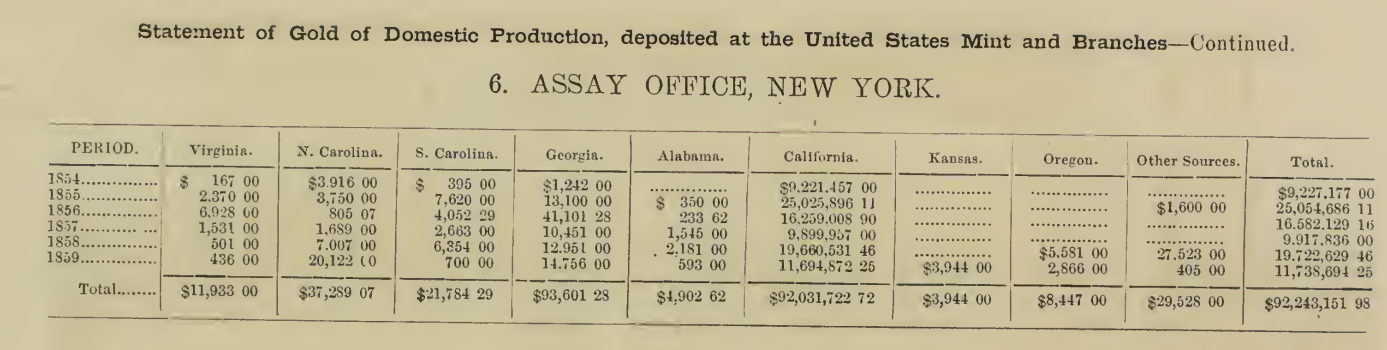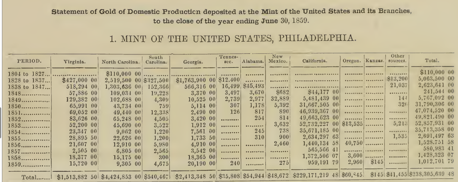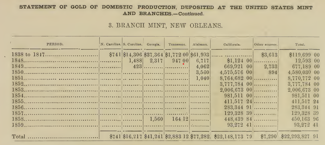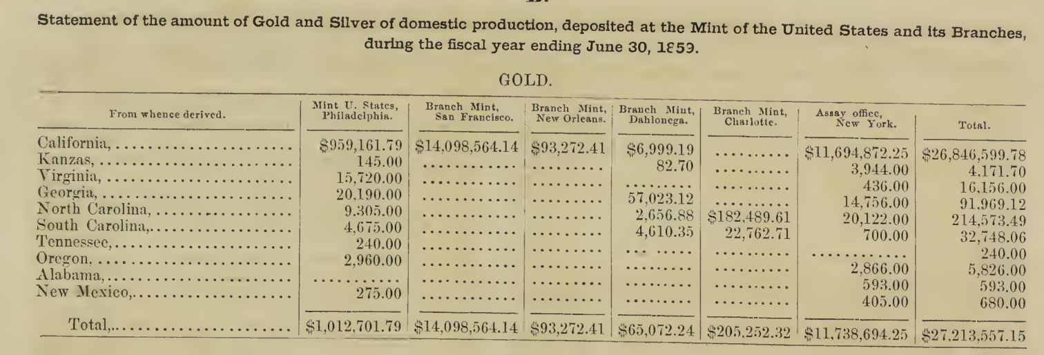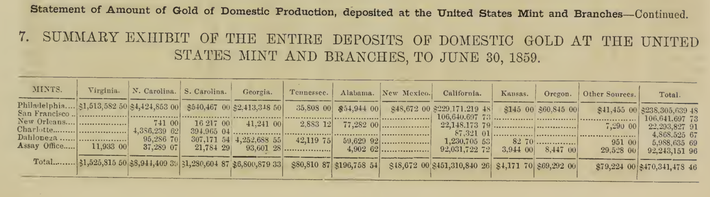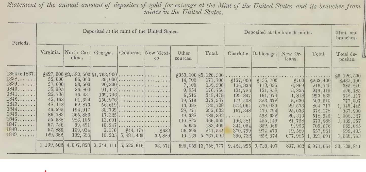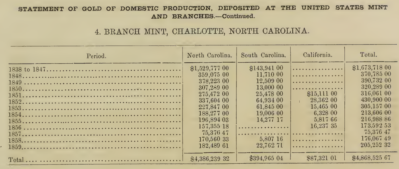 Take the 1849 line above. $102k from NC was deposited at Philly, $390k at the Charlotte mint.
