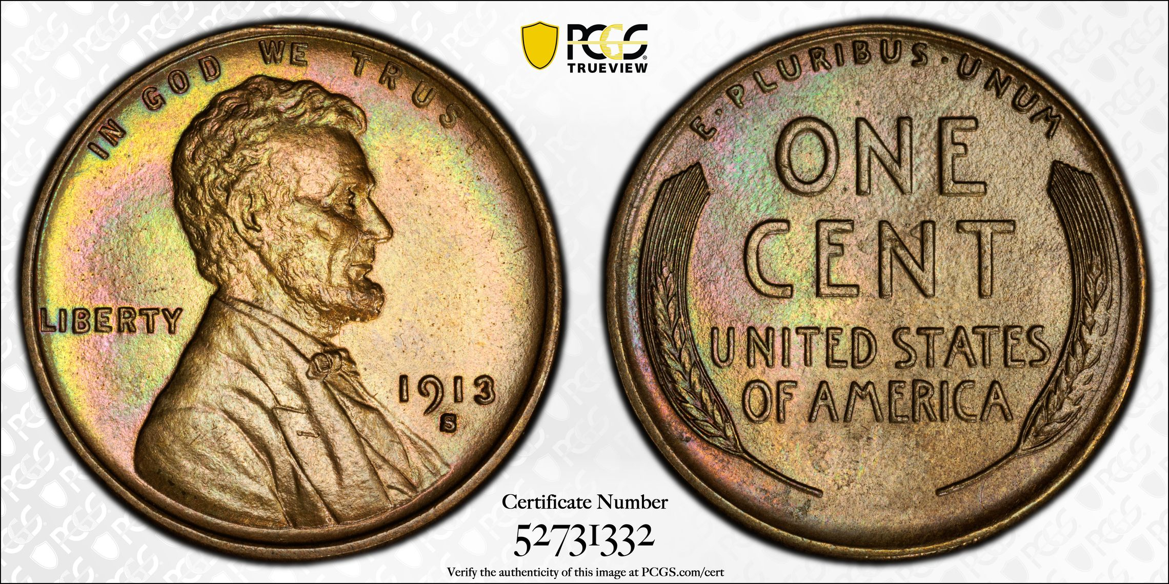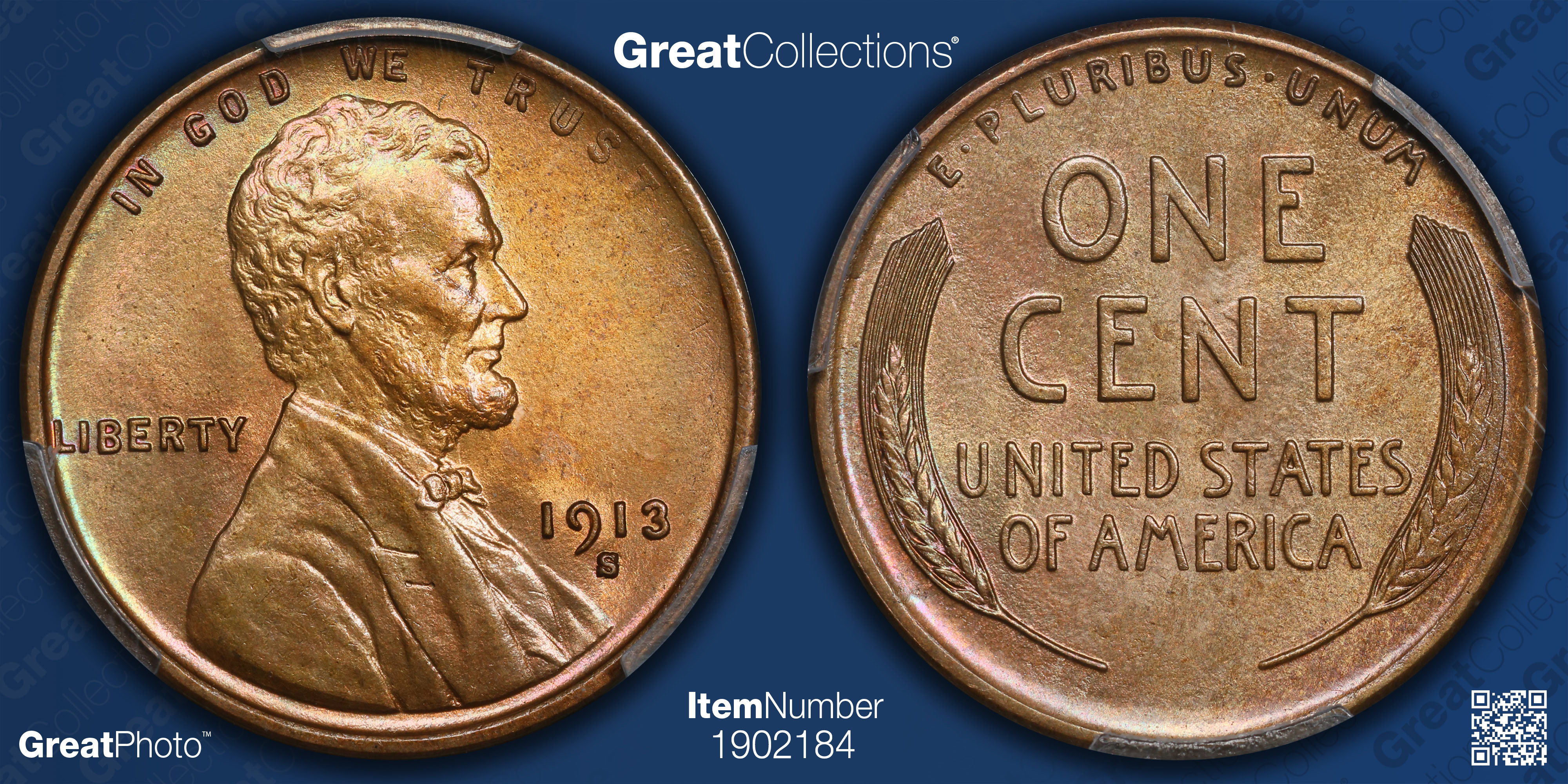 Here's the Trueview of that 1913-S Lincoln cent closing on Sunday. It's MS66BN PCGS, Pop 3/0. PCGS Guide is $7,000 and current bid is $1,050 (6:30 am Friday). Heckuva coin! It's GC Item #1902184, or Search for Terry's Toners.