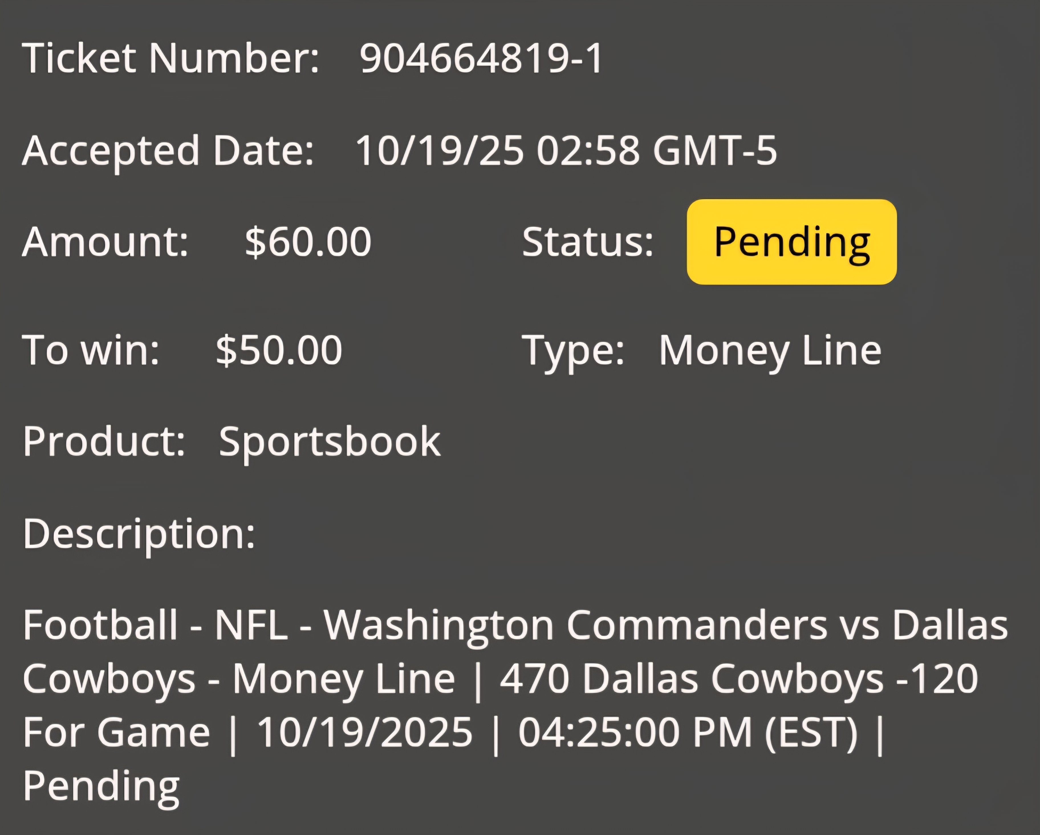 Happy to start off the NFL today with a win, after a weak Saturday of college.