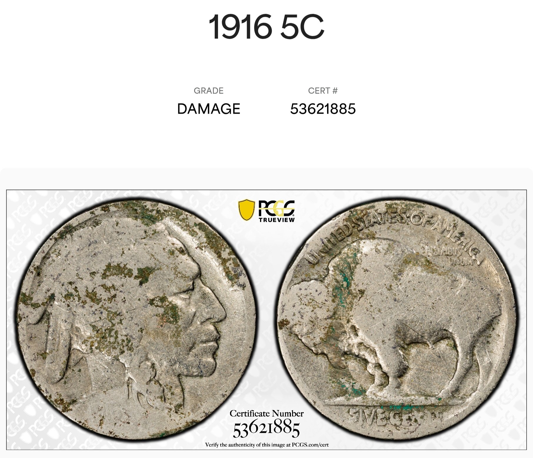 "5IVE" CENTS , 1916 Buffalo Nickel- No grade, Damage