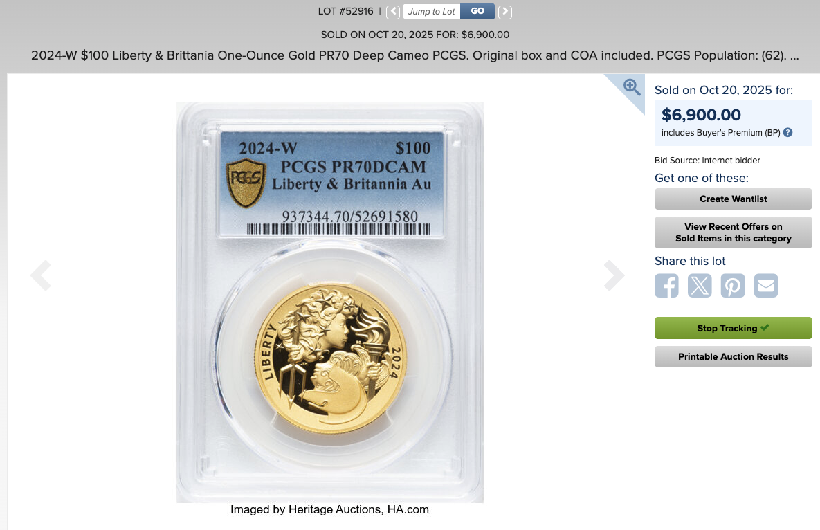 Is the 2024 liberty & britannia high relief gold coin considered part of the liberty series? One just sold on HA today for $6900 today.