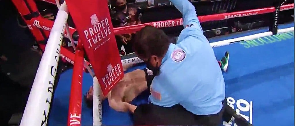 In 1965, Nino Benvenuti took out Sandro Mazzinghi with that uppercut, it was similar to the Tank Davis-Leo Santa Cruz knockout, just boom, an uppercut out of nowhere and Mazzinghi was out cold.