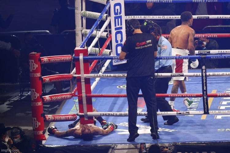 Despite this, in the sixth round, he caught and hurt Potter with a uppercut from his healthy arm, a true Hail Mary. Potter was able to get up but Williams quickly put him back down twice more and the fight was stopped.