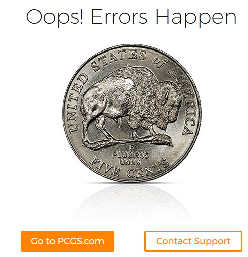 still happening and when on a coin specific there is the pop for each grade with closed auction prices. when i select an auction to view the same error page is shown