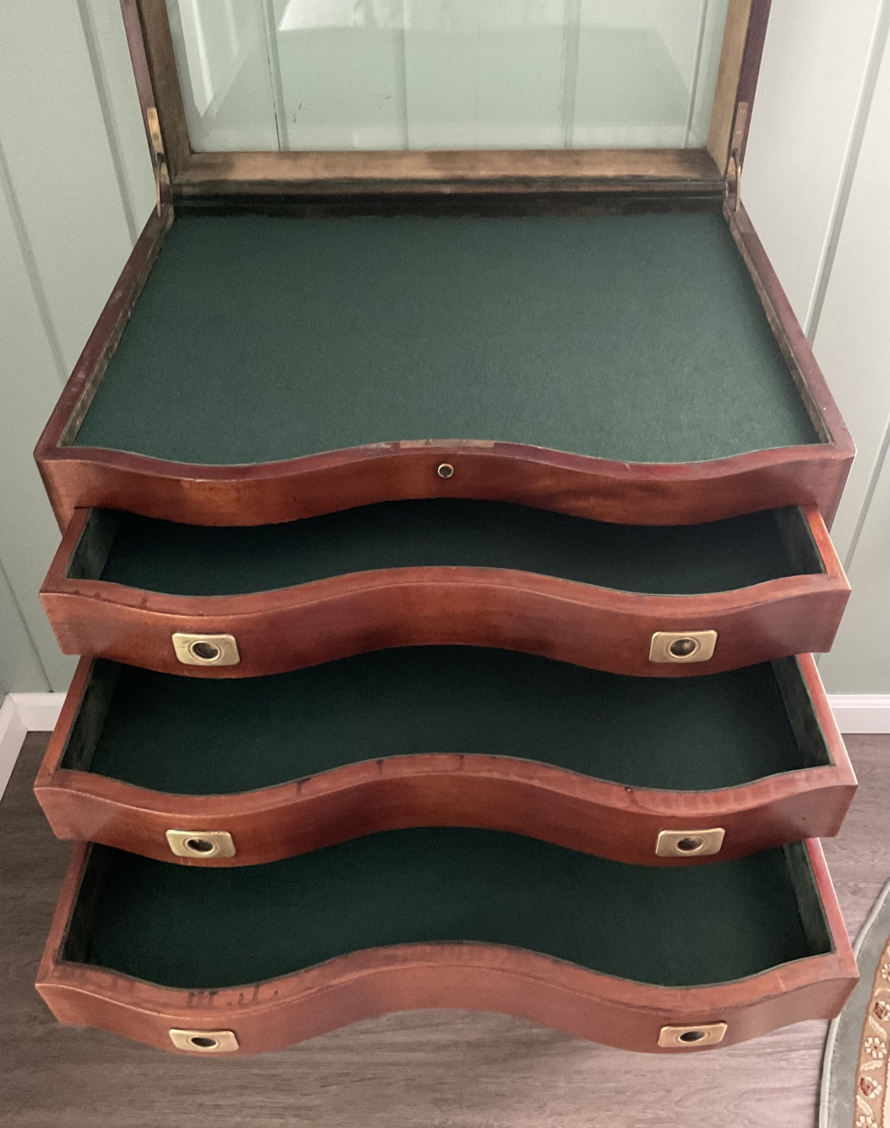 Got a call this weekend from a friend of mine who is an antique dealer in Connecticut. Said he had something I might have an interest in. I had a free day on Sunday, so after breakfast my wife and I headed down to the shop. I was blown away when I saw this beautiful cabinet that I envisioned to house and display some of my favorite coins and vintage silver bars. My wife must have had the same vision because before I knew it, she exclaimed…”he’ll take it”!