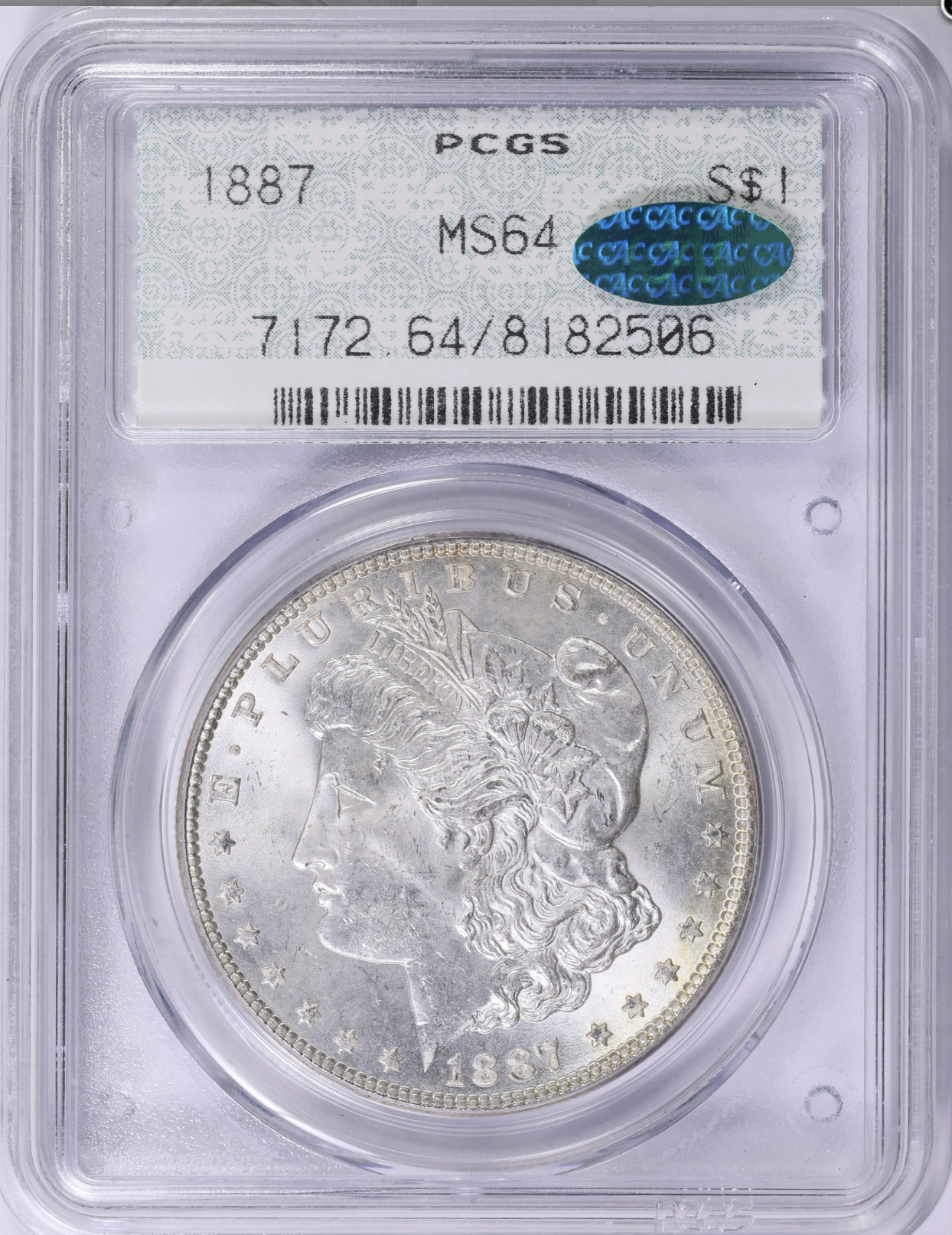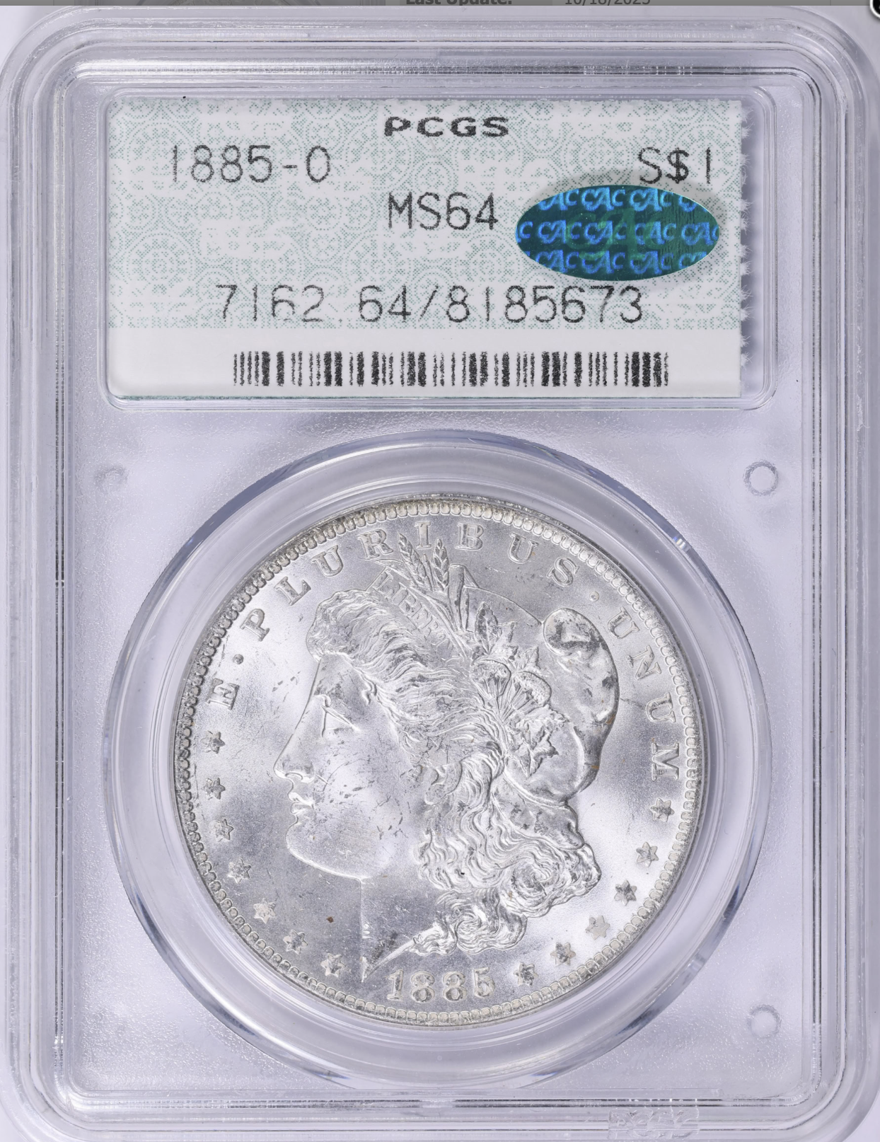 Yippee. I have joined the Doily owners group. Really happy with this one. From what I can tell it is not represented in the spreadsheet. A very strong for grade MS64CAC 1881-S 7321252.
