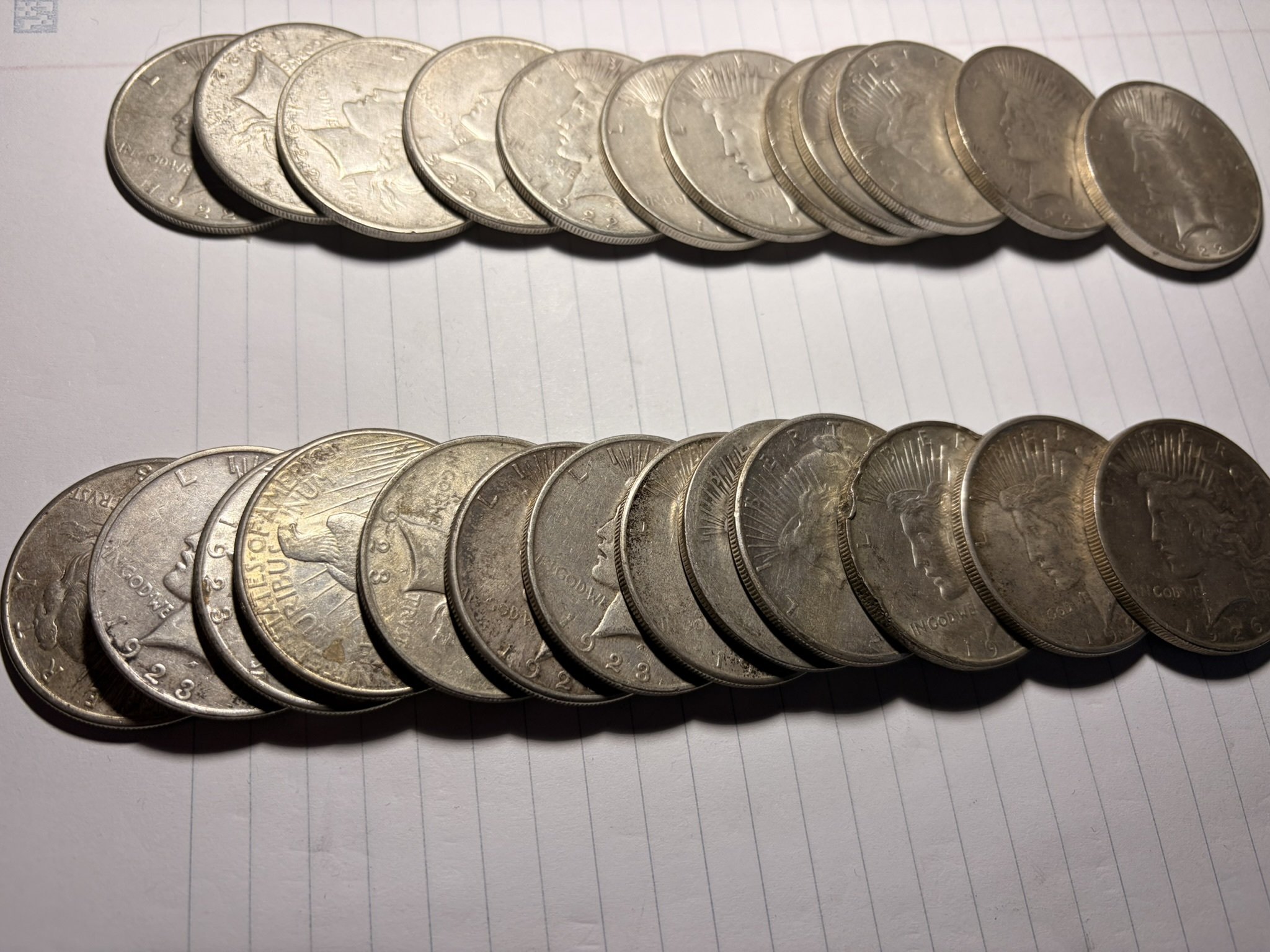 25 Peace Dollars 1922-26 (melt value 37 - collecting value if "VF" 47+)