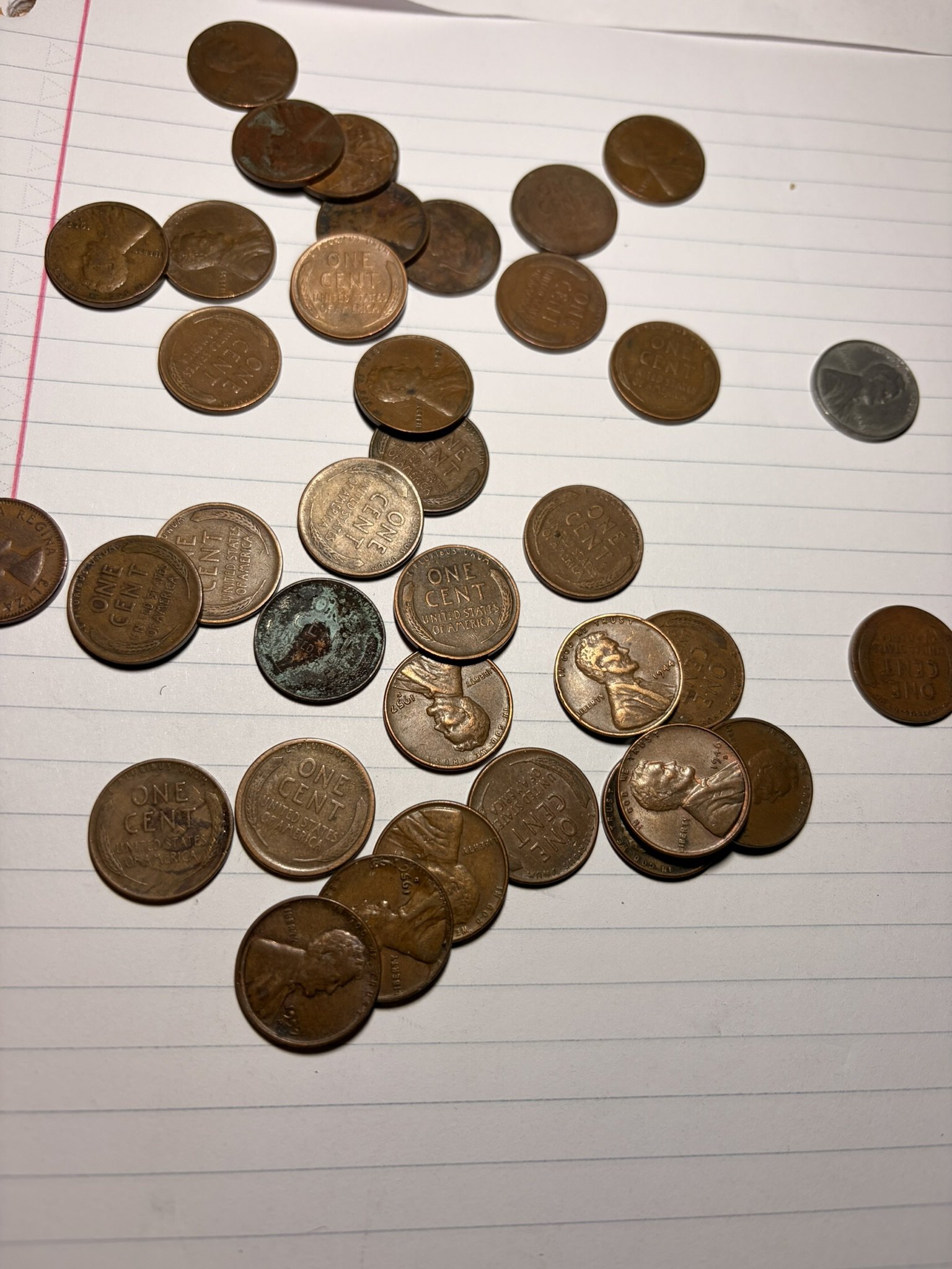 Aside from those I've got maybe 50 wheat pennies - mostly worth 9 cents to .75 cents...