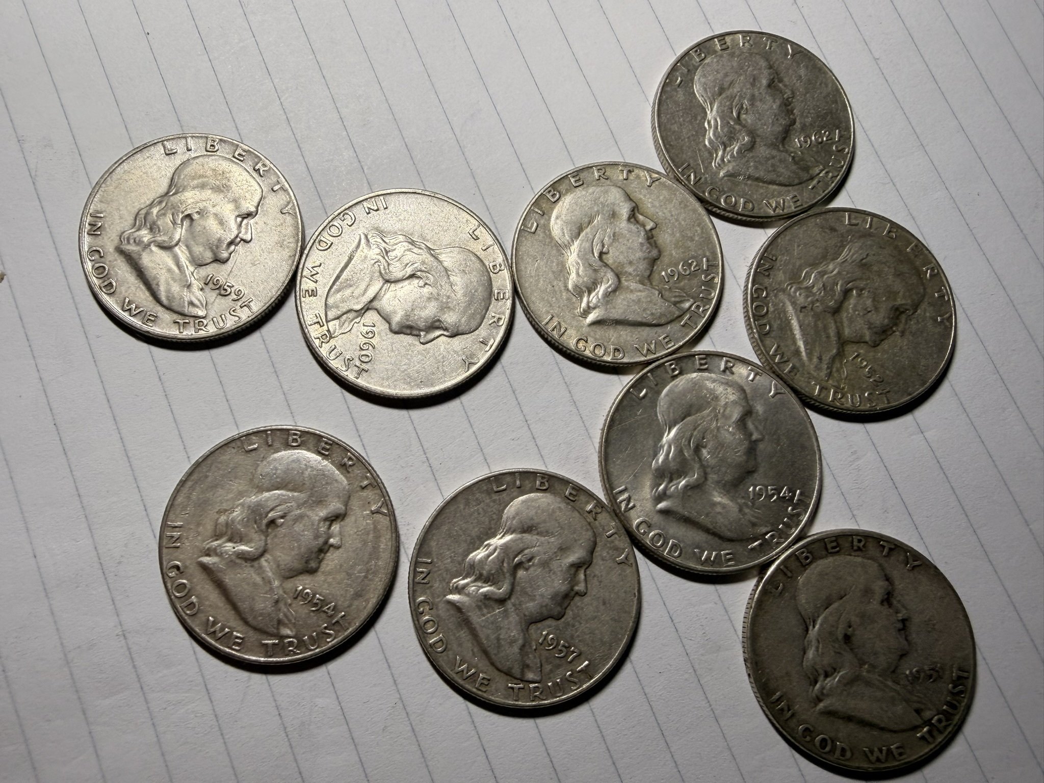 9 Franklin halfs 1951-62 (17 melt, $22-$25 collect)