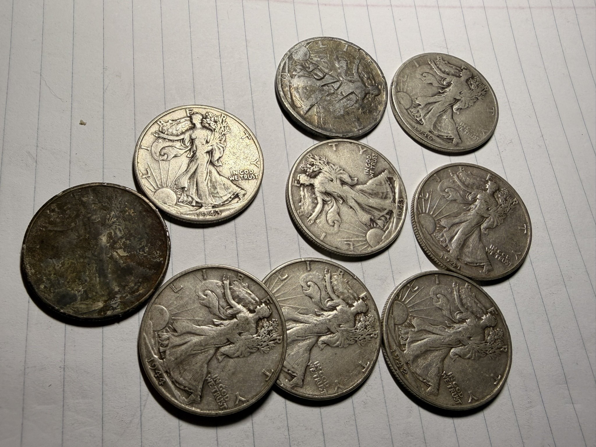 10 Walking Liberty halfs 1917-43 (melt 17 or collect $25-$30)