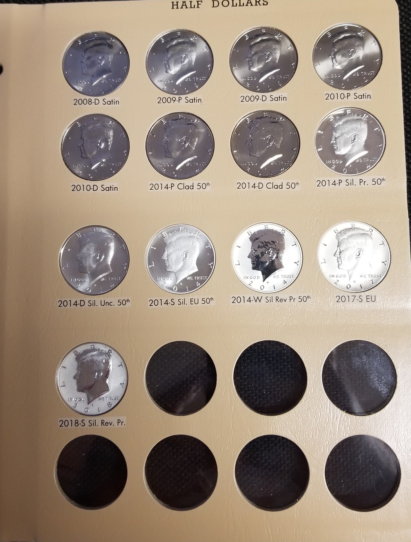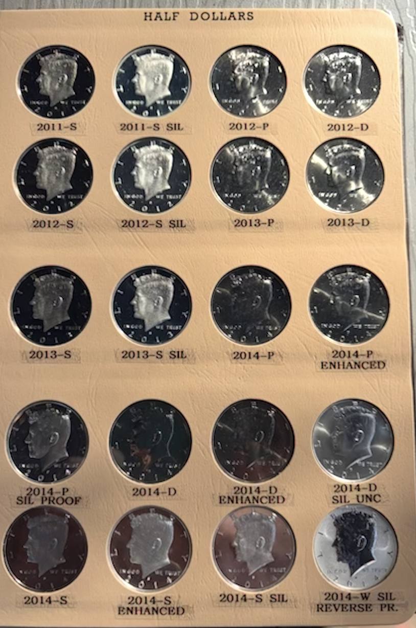 OAKSTAR pick up a Brother P Touch label maker with clear label tape. You can duplicate the Dansco factory style dates and description. I personally buy blank Dansco pages and customize my own albums. Not necessarily my Roosevelt albums but my Kennedy albums are all customized. to include the 64 Accented hair, 1998 Matte finish, all the different 2014's the Enhanced proofs Etc. All in date order. Depending on where the hole is on the page ( some lines have more space between the horizontal rows ) you can squeeze two lines in. One for the date and one for a description. Super happy with mine.