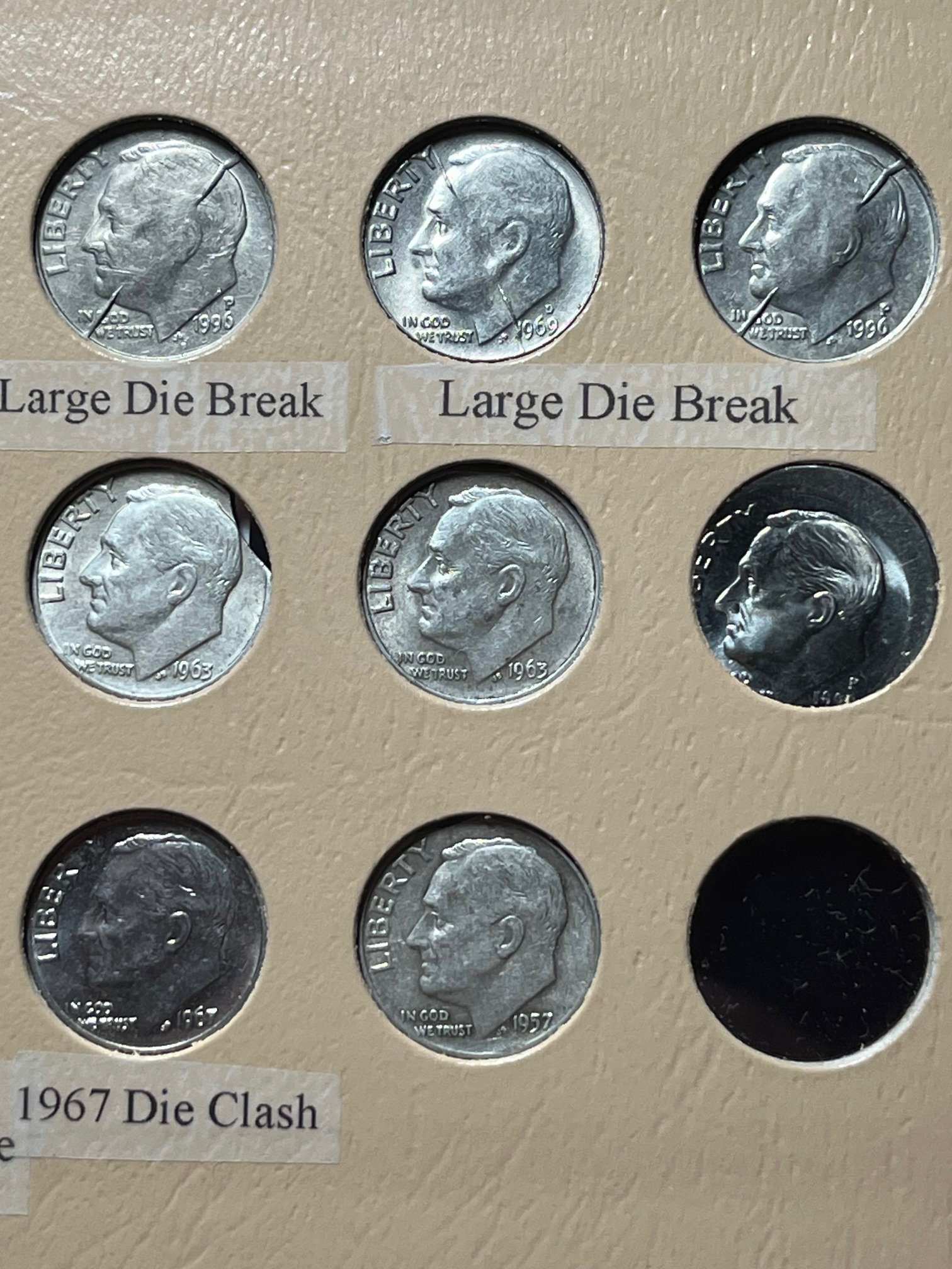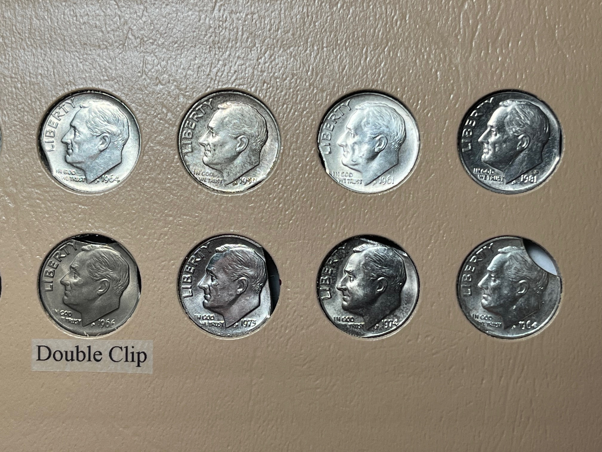 Very nice and interesting set with all those clipped and die break coins! Nice job! With so many clipped dimes, I chuckled thinking that the last slot represented a 100% clip.