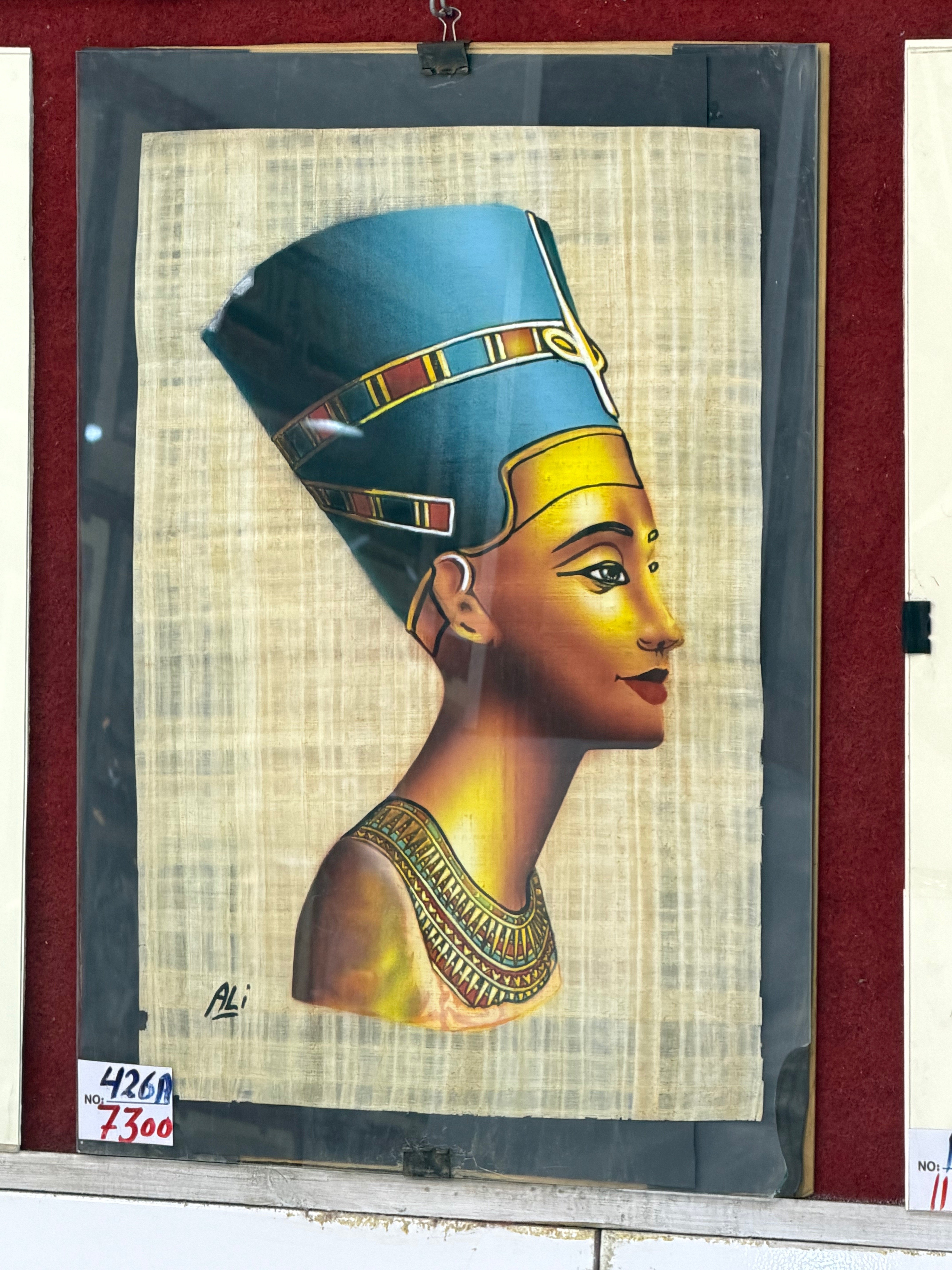This particular particular painting on papyrus depicting the bust of Queen Nefertiti that resides in the BERLIN museum caught my attention;