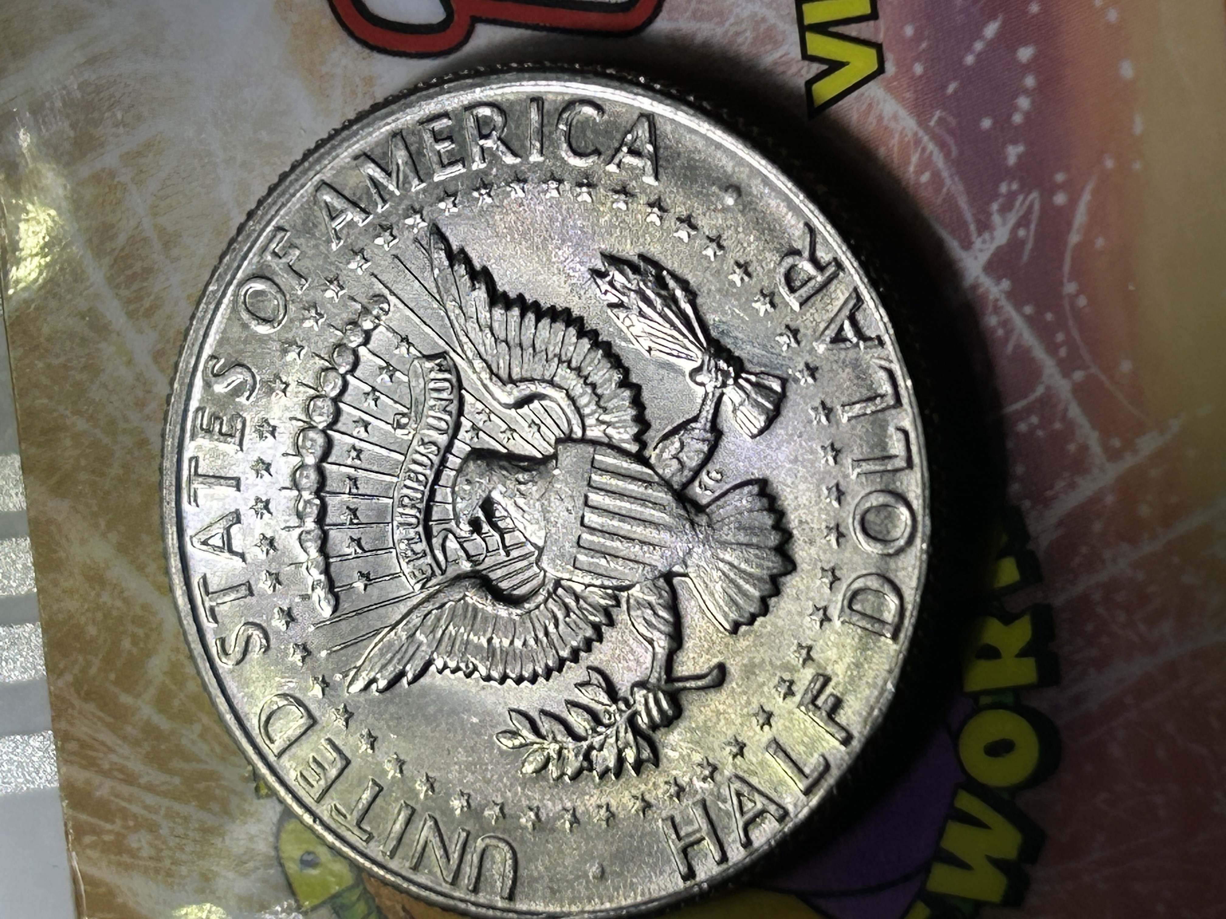 Is this the, 1967 KENNEDY DDR FS-801, It shows clear doubling on the reverse inscriptions, including “UNITED STATES OF AMERICA” and “HALF DOLLAR with DOUBLING on the date as well.