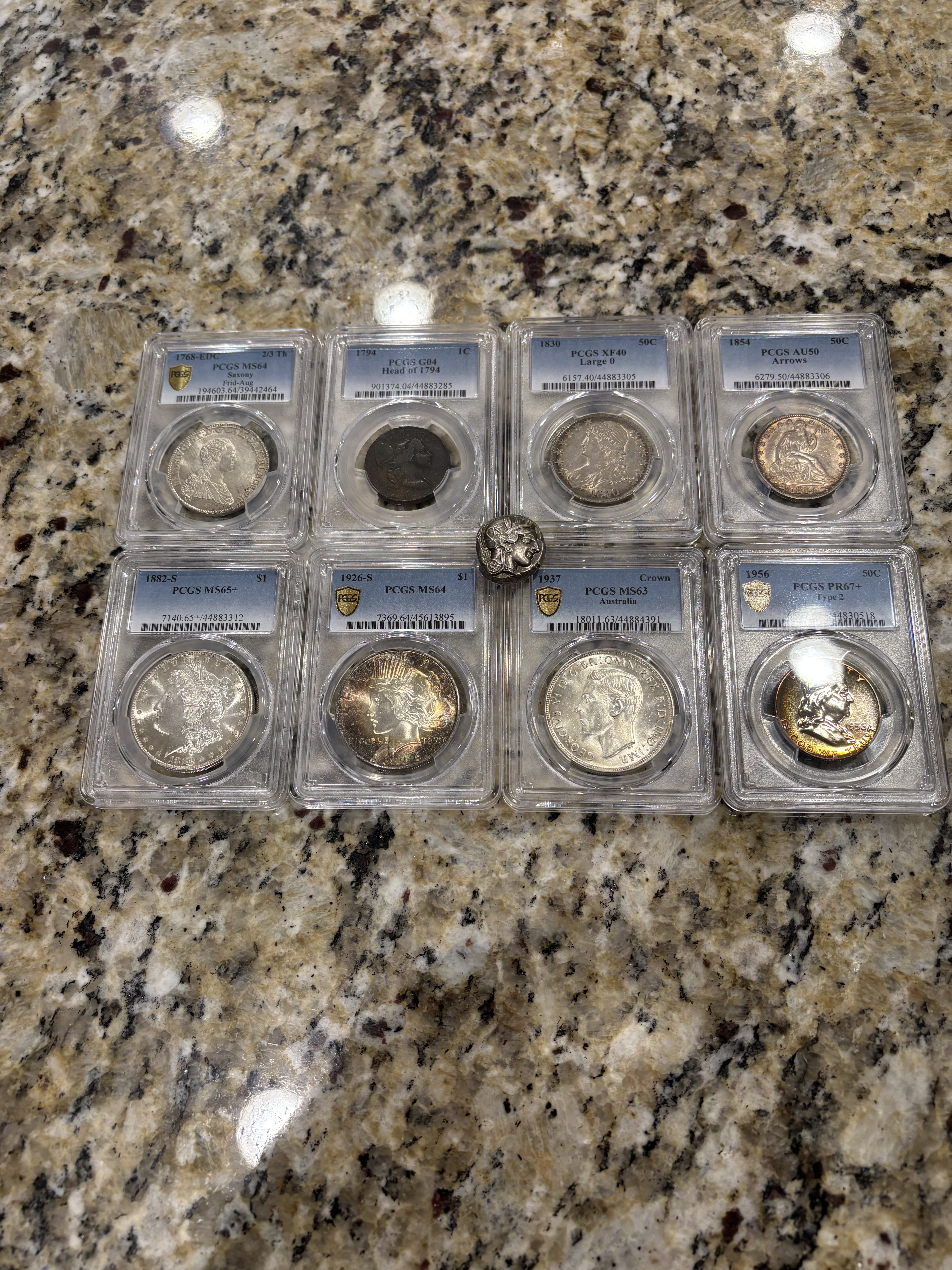 Then you start looking for attractive coins. You start searching for what is suppose to be a common date, which it is, but there is a sea of ugly coins; scratched coins, corroded coins, coins that have been dipped to death etc. Thats just the coins IN straight graded slabs.