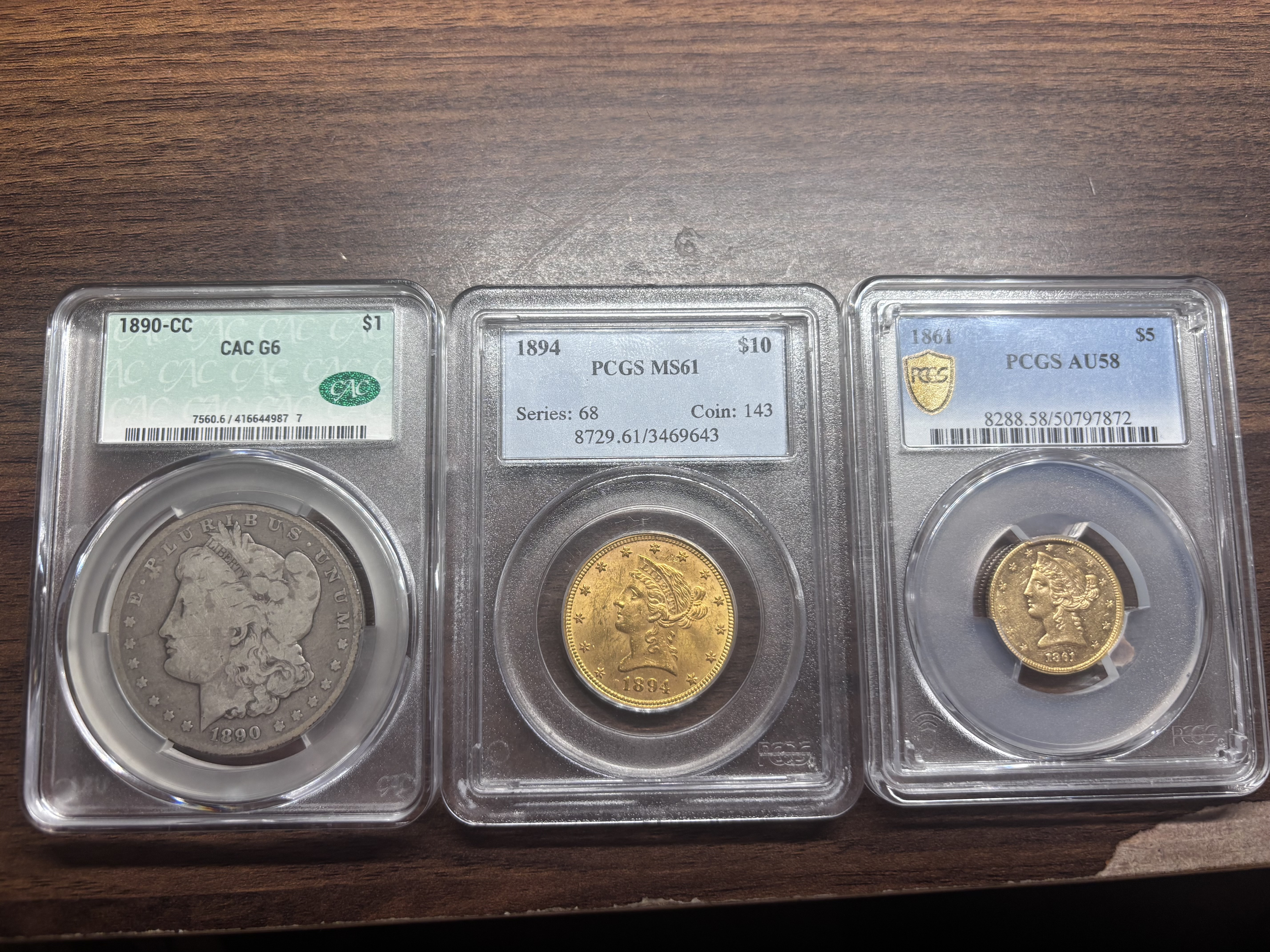 Very sweet trifecta, love the 3rd place 1890-CC Morgan $1, but I'll go for the gold.