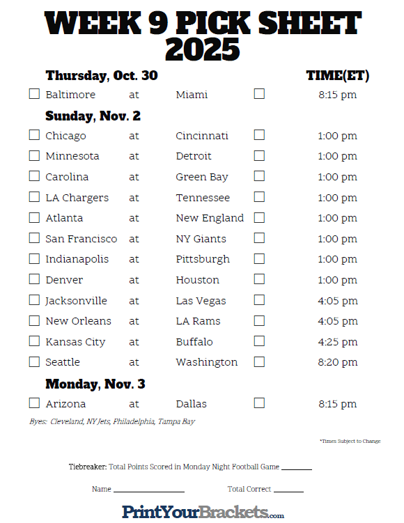 Ravens Chicago Detroit Green Bay Chargers Pats SF Indy Denver Jax Rams KC Seattle AZ