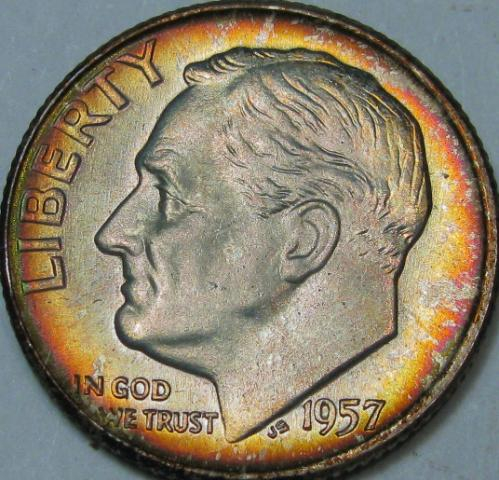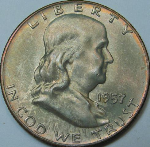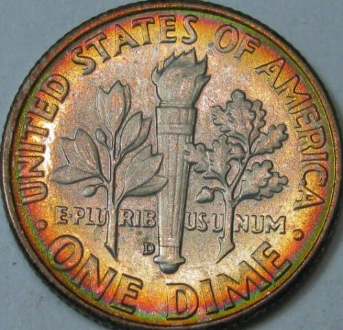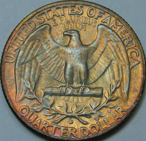 It's a 1939-D Walker in MS66 with splashes of predominantly orange toning across the obverse. Russ (RIP) started a thread about it entitled "A Walker that fell from the top off the Yum Yum tree." Someone wrote that the Yum Yum tree was grown in "You suck" soil.
