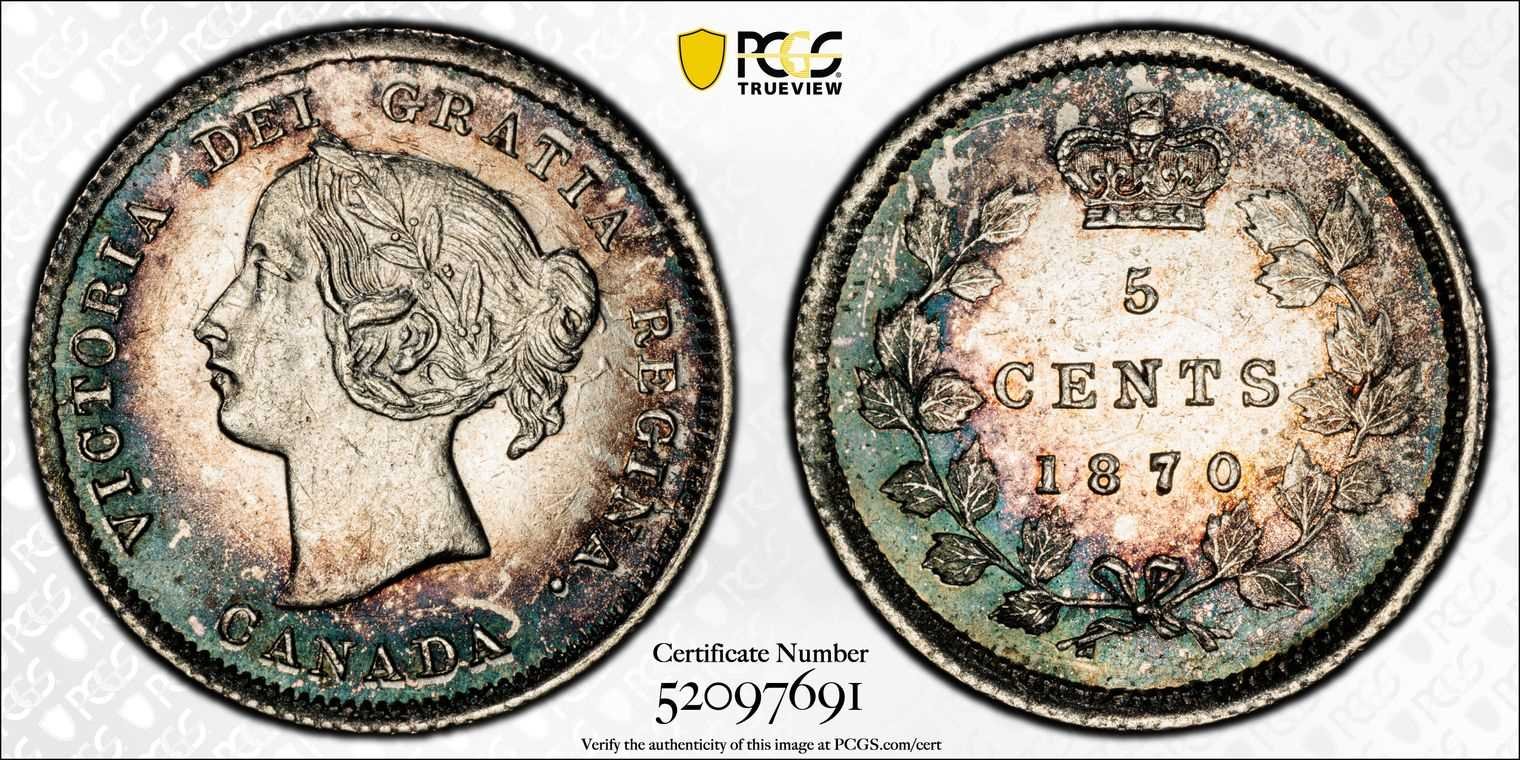 Canadian 1870 5 Cents Narrow Border, 7/7?