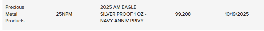 Latest from Son of a Silver Stacker.............U.S. Mint Sales: 2025 S Navy Privy ASE Tops the Sales Chart for the Second Consecutive Week!