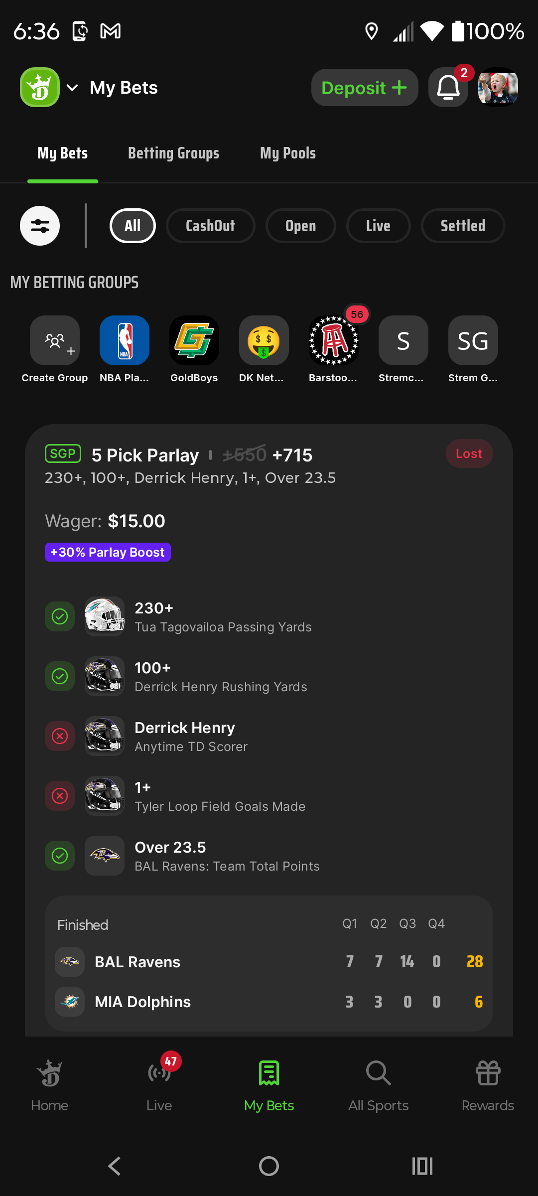 Just missed out on a potential $500 cashing, SMU ML lost by 1 point, Alabama ML was the other leg needed and I'm sure they will win easily so 1 point will cost me $500