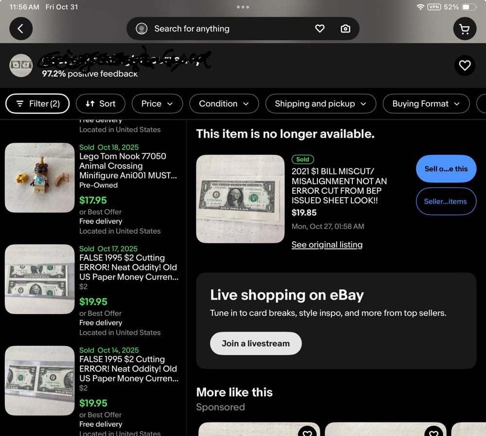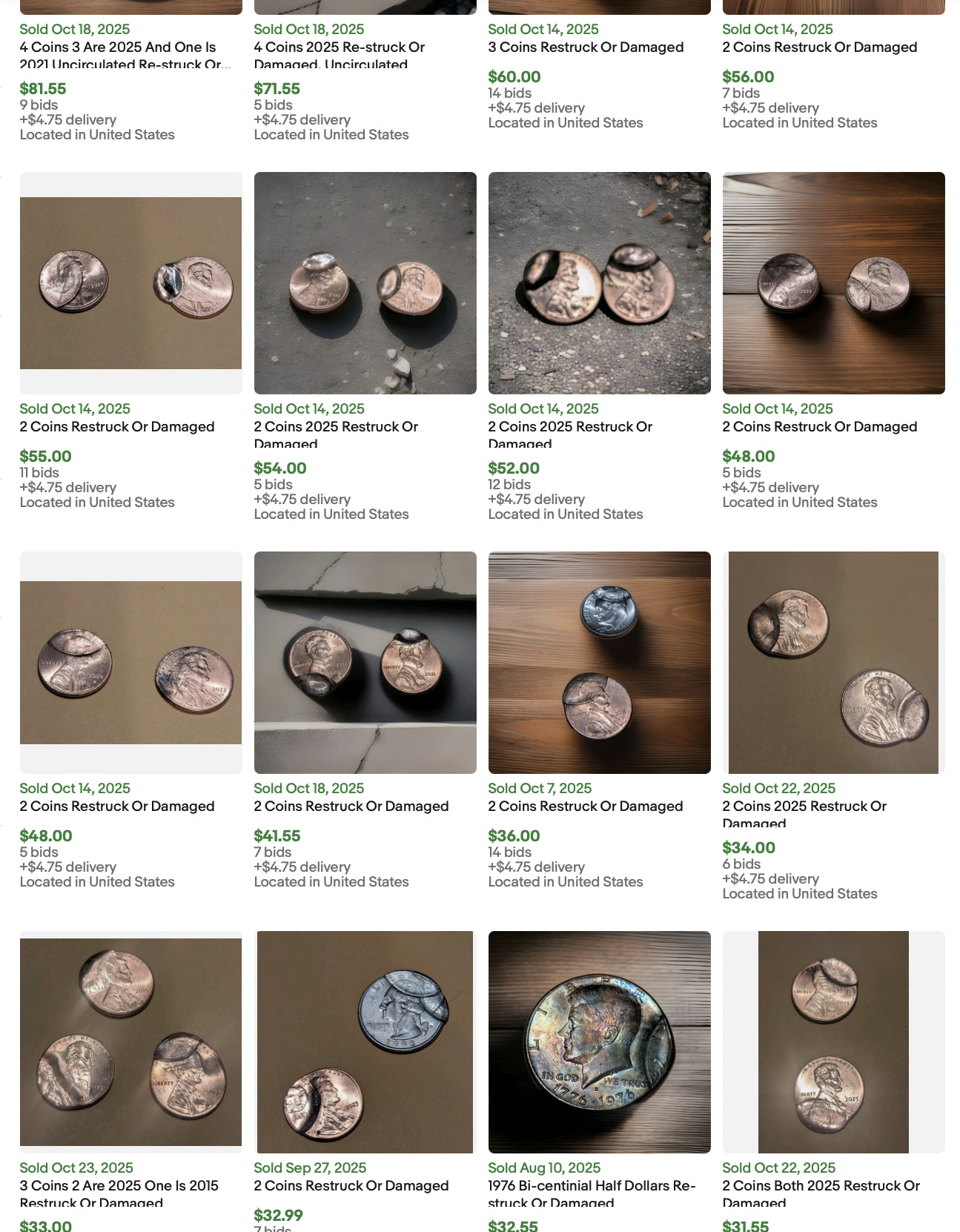 Been seeing a lot from this seller lately - fake mint errors created by pressing two together with a vise. He includes the caveat "Restruck or Damaged" in every title to minimize the bad karma. Still crazy how much these are selling for and no complaints from buyers. Unethical or respect the hustle?