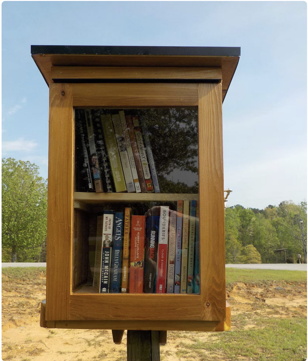 I have a few of these in my neighborhood, as well. Maybe, I will stock it with some old Red books…