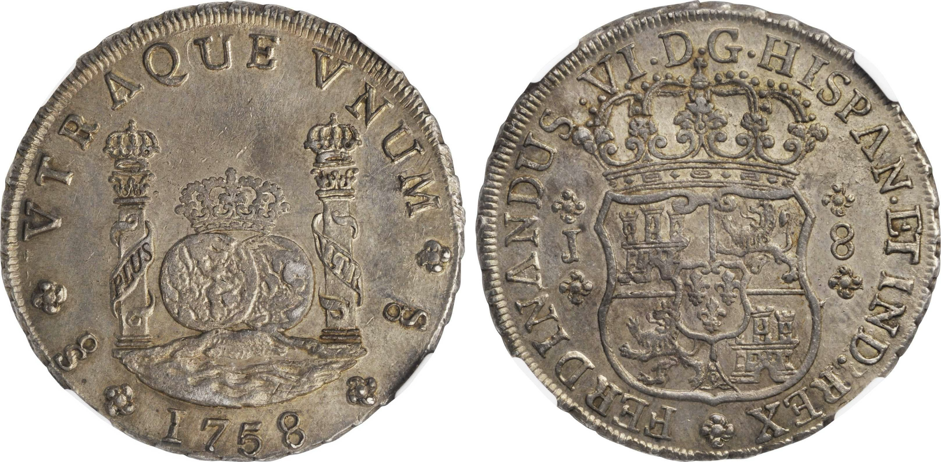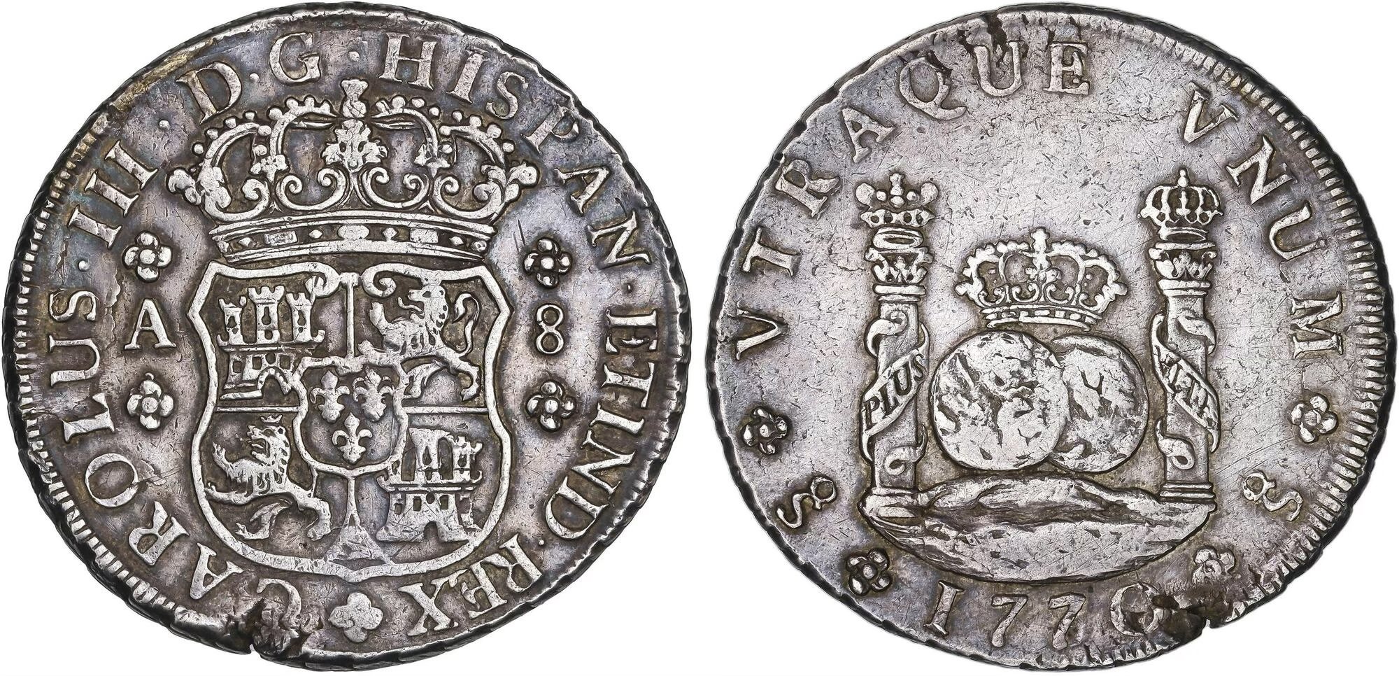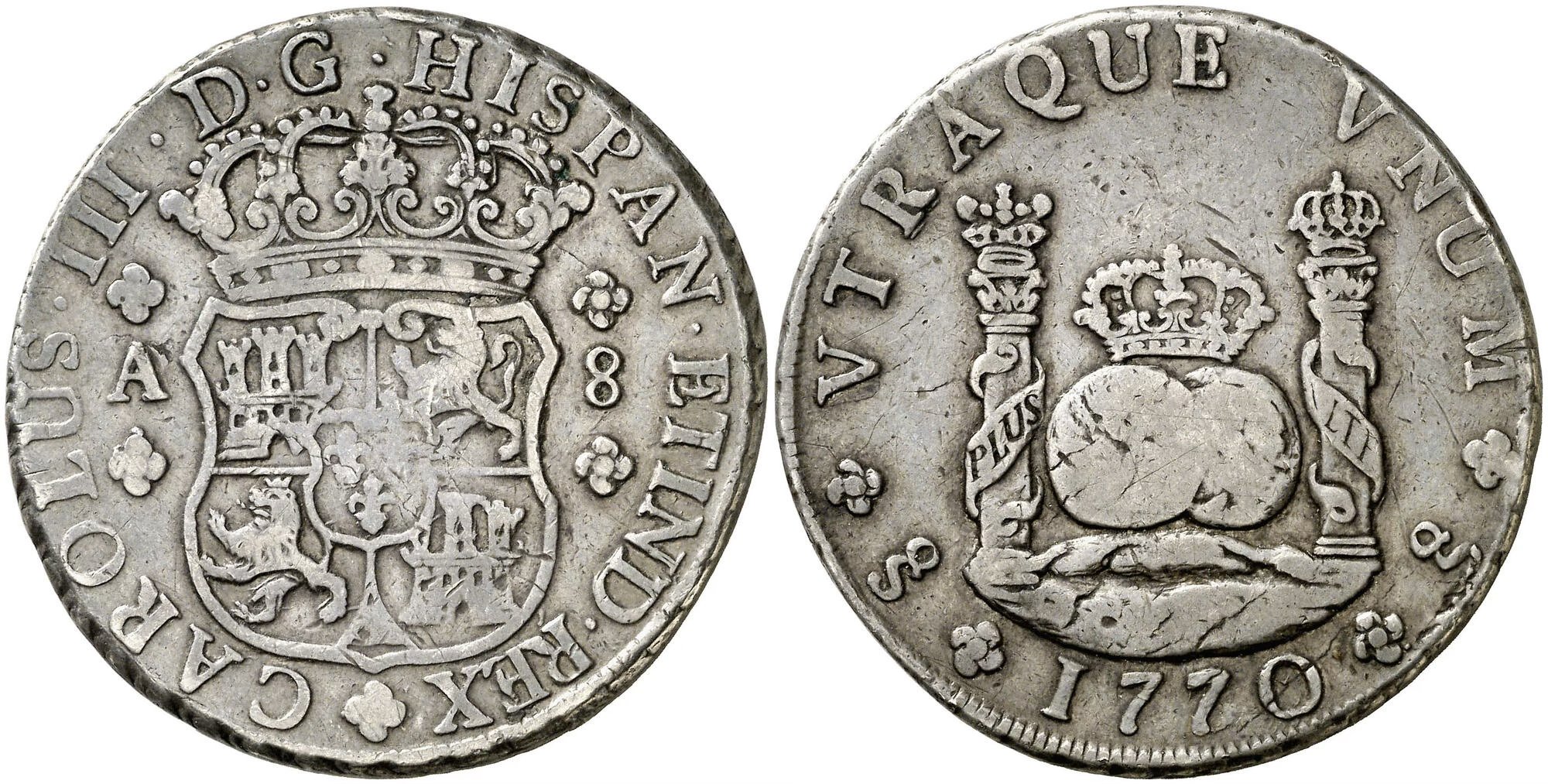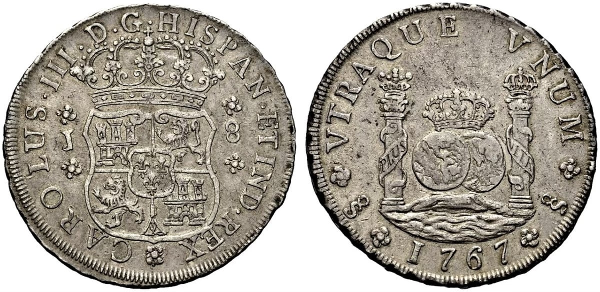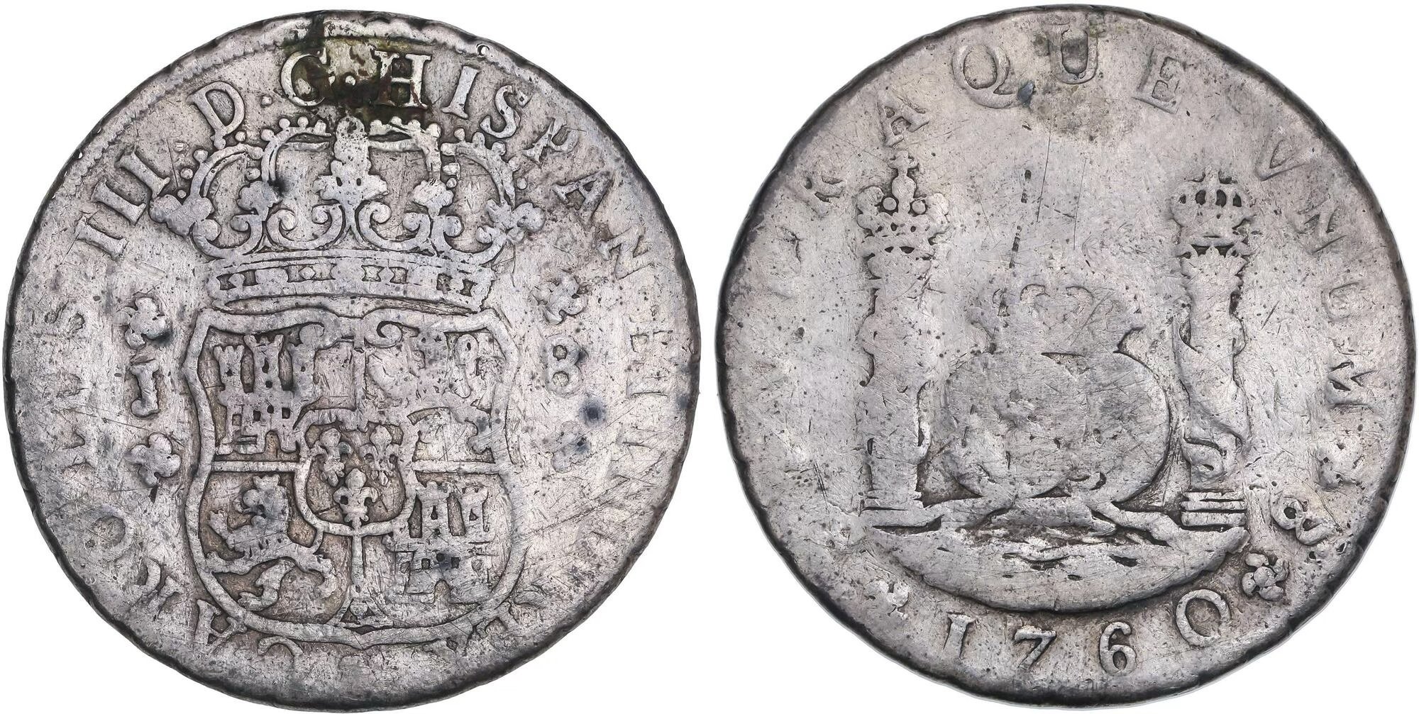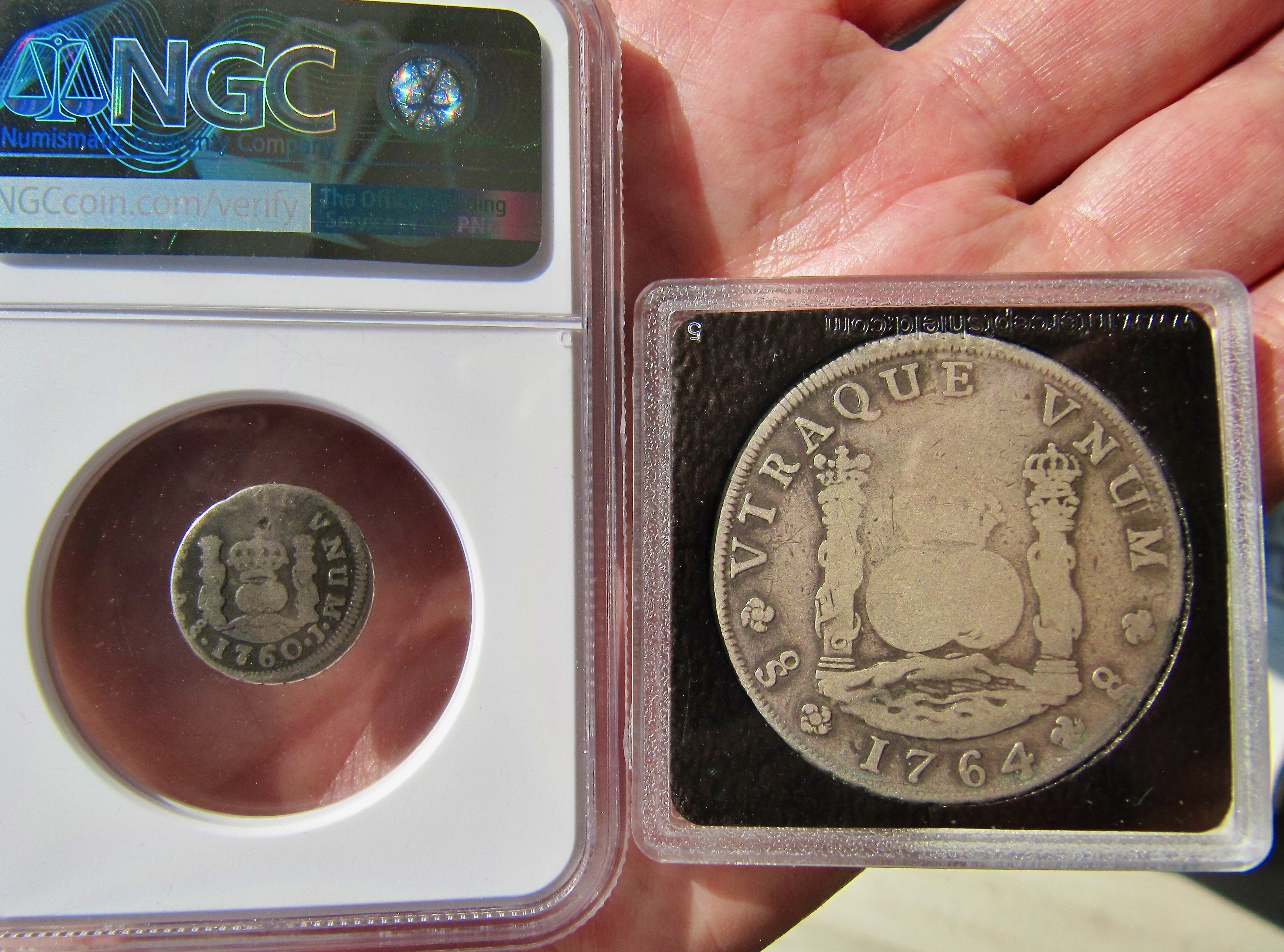 There are 13 dates included in the 8 Reales series, with two dates, the 1761 and 1769 reported to exist with previously no photographic confirmation. In 2023, I was sent a photo from a collector in Indonesia who dredges rivers to find coins. He showed me a picture of a 1769 Santiago Pillar. He rejected my offer to sell the coin and subsequently sold it to a wealthy Indonesian collector.