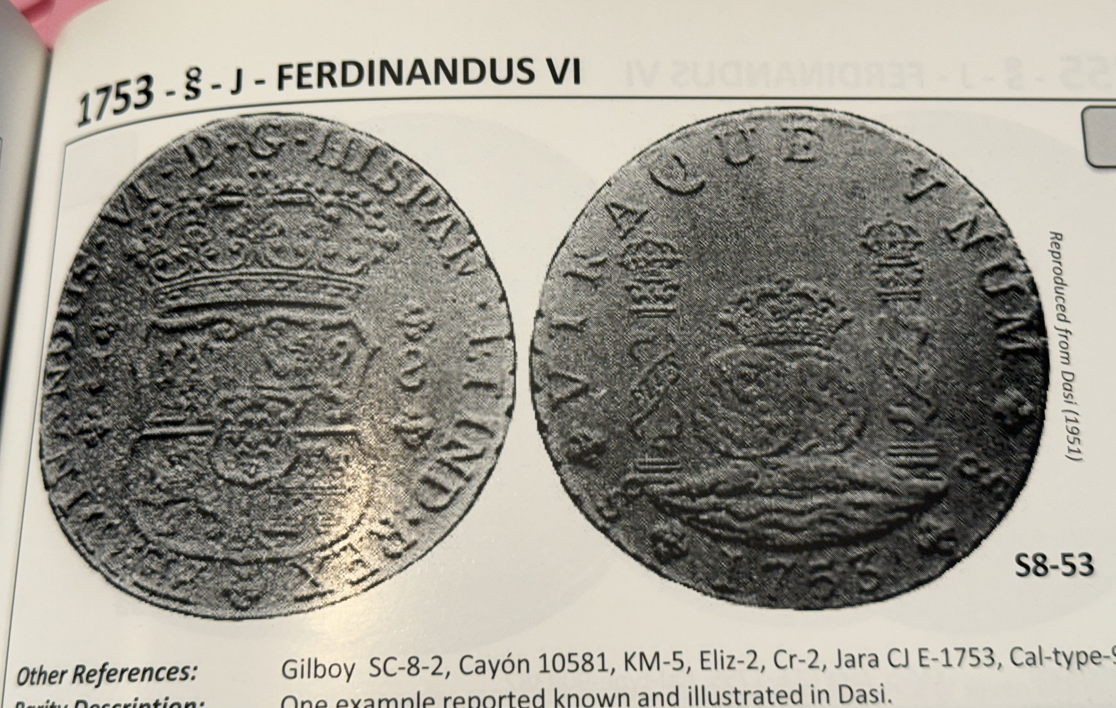 1758 - Jara notes in his work nine coins observed. I place in brackets after the initial numbering the coin which correspond to his census when clear.