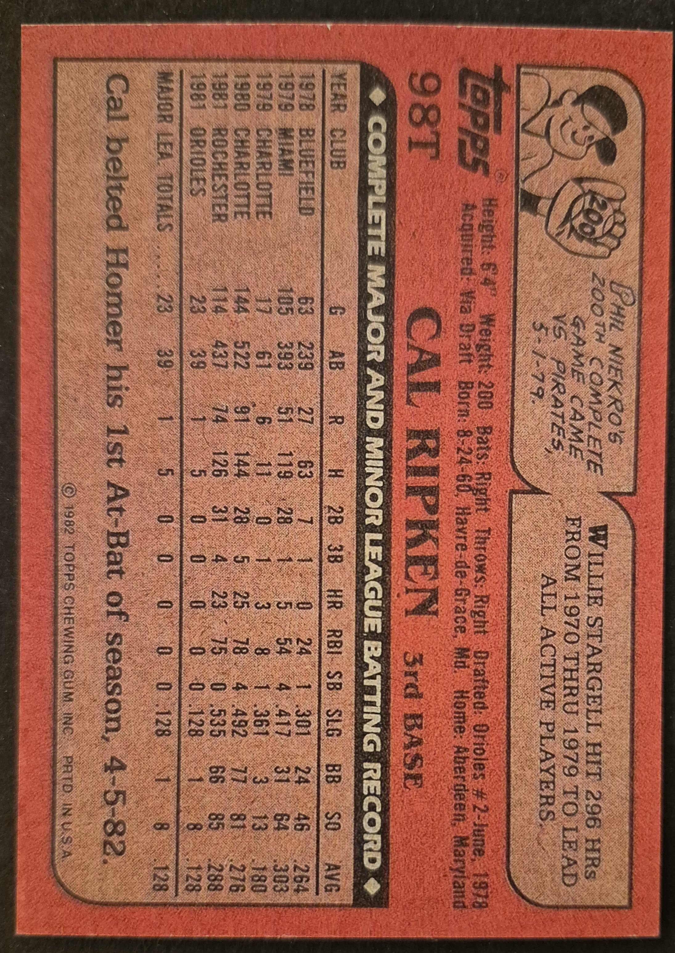 Just an aside to this conversation as I recall busting an ‘82TT case in the early 90s and most of the 100 Ripkens pulled would not have merited a 10.