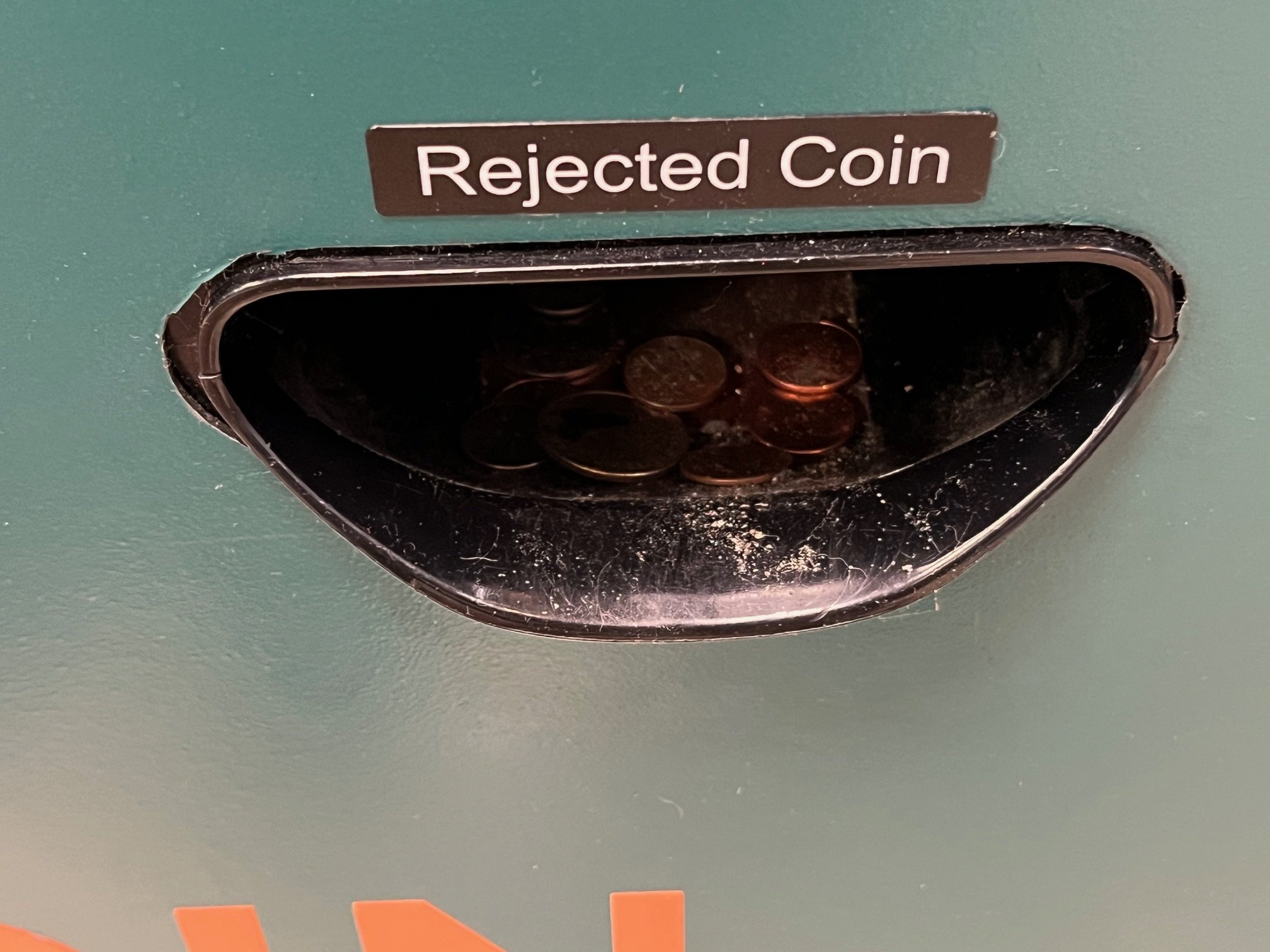 It's usually a waste of time to check the Coinstar at my local Walmart but today it coughed up a small concretion of gummy small change and a watch battery, but also a 1939 silver Canadian quarter and some kind of fancy crown token, probably for a royal arcade somewhere. 🫅