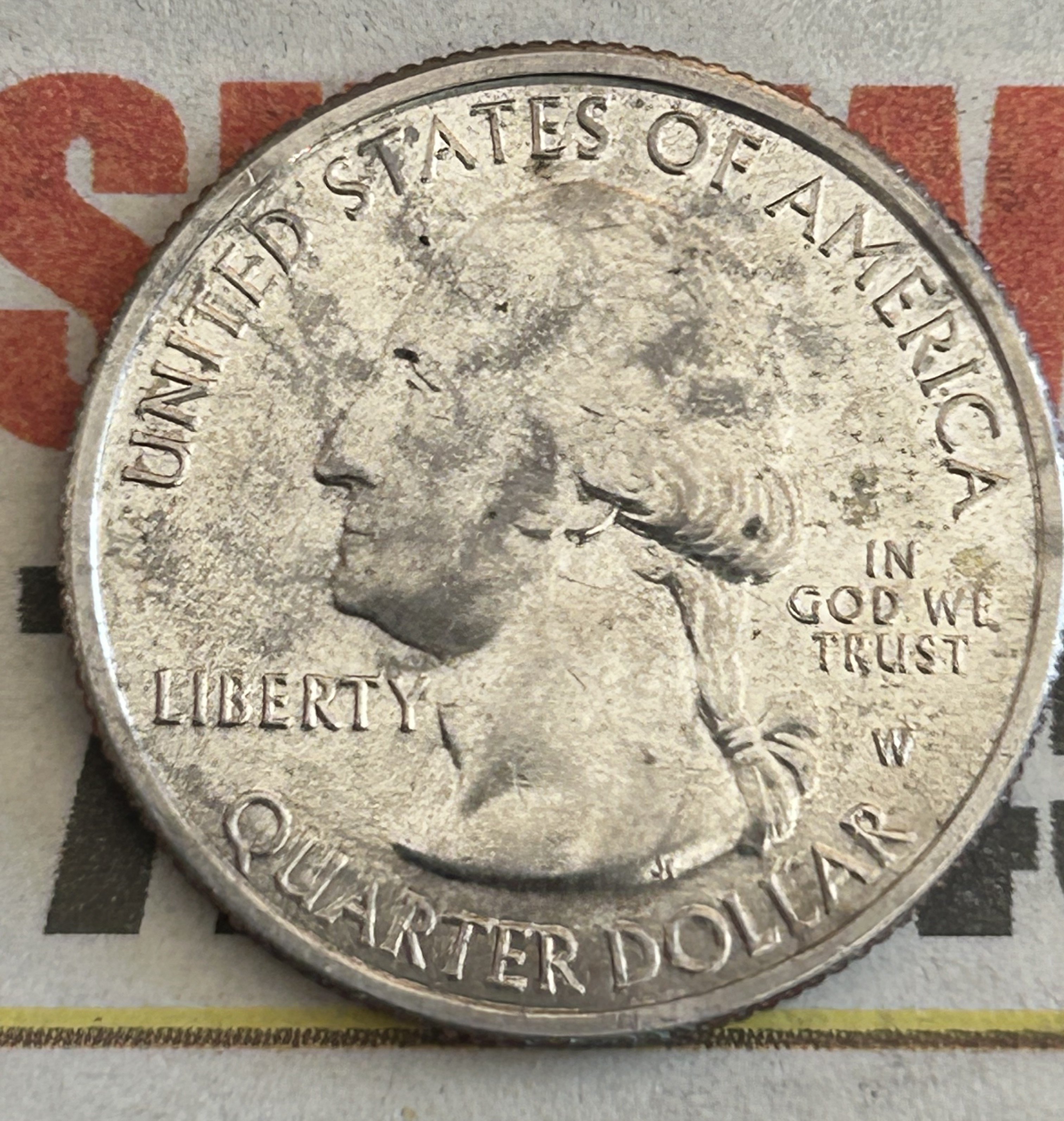 No gutter metal but a single quarter sitting in the tray. Just so happens to be a 2019-W Lowell. Shame it's got some sort of contamination on it. Believe it or not, I check my quarters in change daily since 2019 and this is my first W. RGDS!