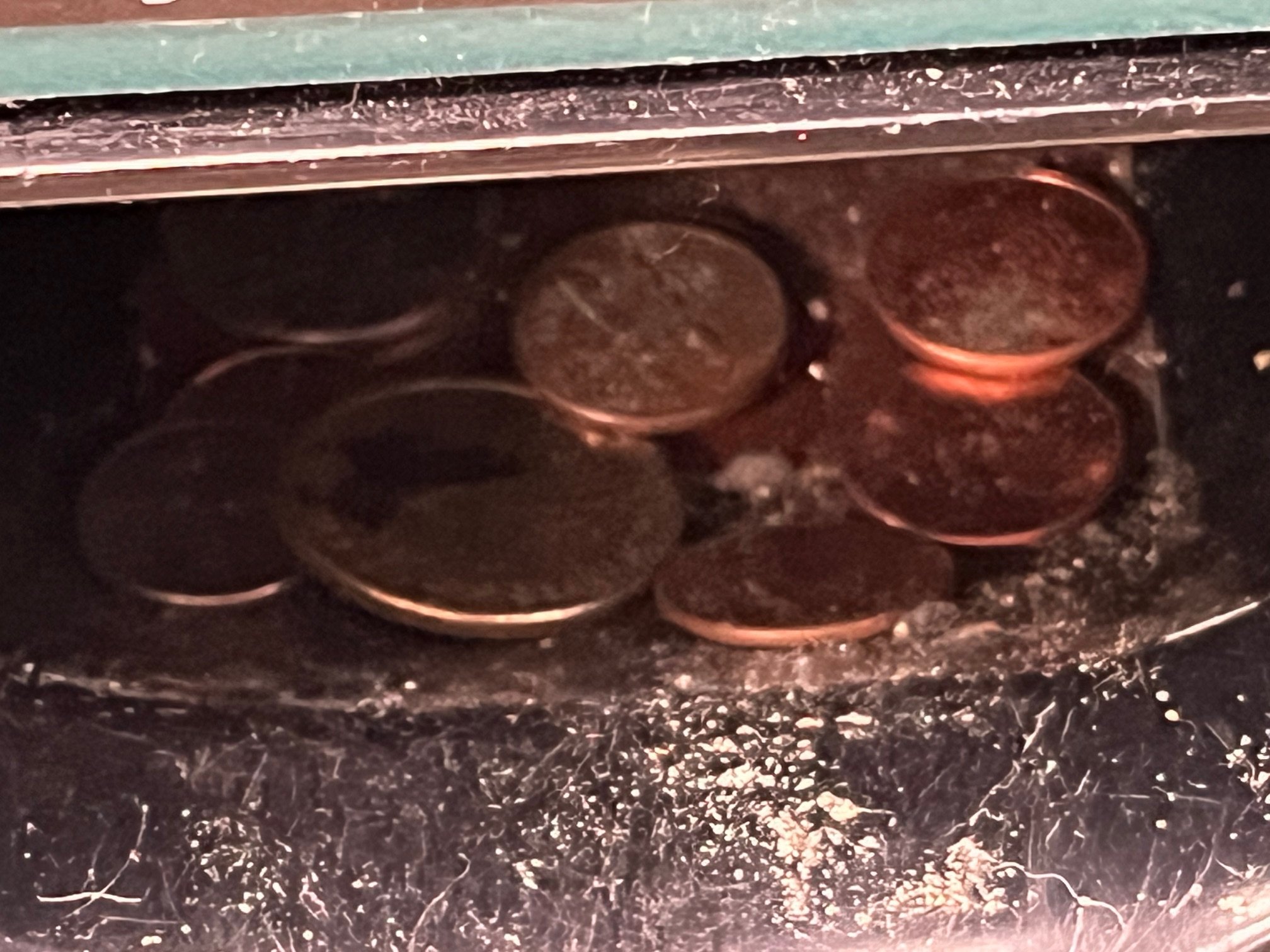 It's been over a year now since my last find. I have 4 different places that I am always looking in. Finally something. Nothing special but boy was I happy to see coins in there.