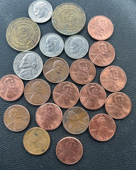 .51 cents including a 1940 Wheatie and a 1999 and 2010 Chuck E Cheese tokens. RGDS!