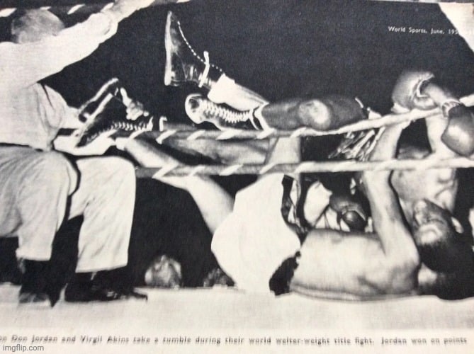 On October 22, 1958, Don Jordan won a twelve-round split decision over top-rated Gaspar Ortega in a twelve-round elimination bout and earned a world title fight with Virgil. After viewing the fight on television, Virgil boasted confidently that he would knock out Jordan within three rounds. “There isn’t a welterweight around who can stay with me,” he said. “I’m the champion because I’m the best. I’m no second Kid Gavilan or Ray Robinson. I’m the first Virgil Akins.”
