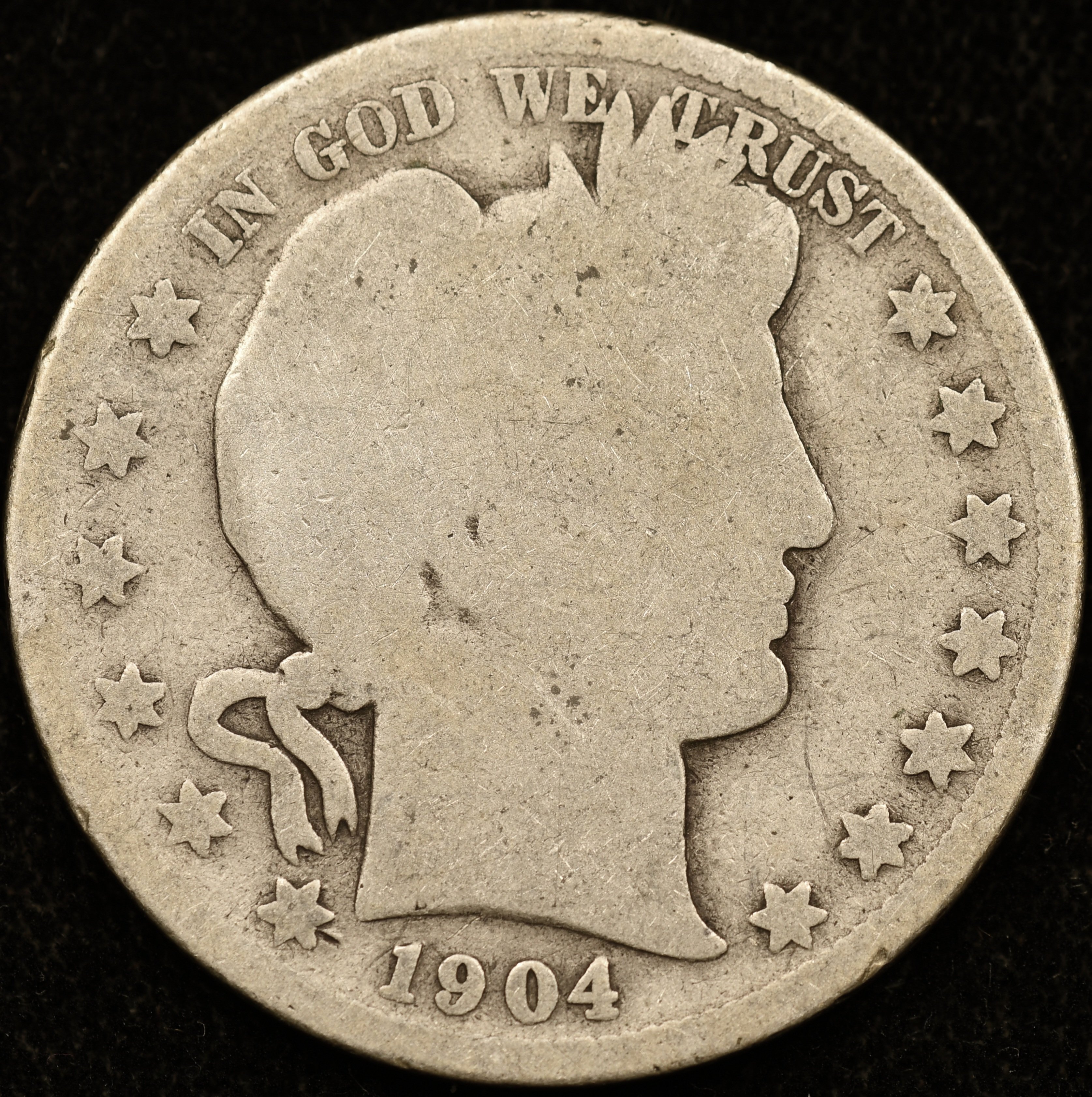 How about a lowball 1904-S Barber Half? I had fun this evening going through a number of Barber Half rolls and found this one.
