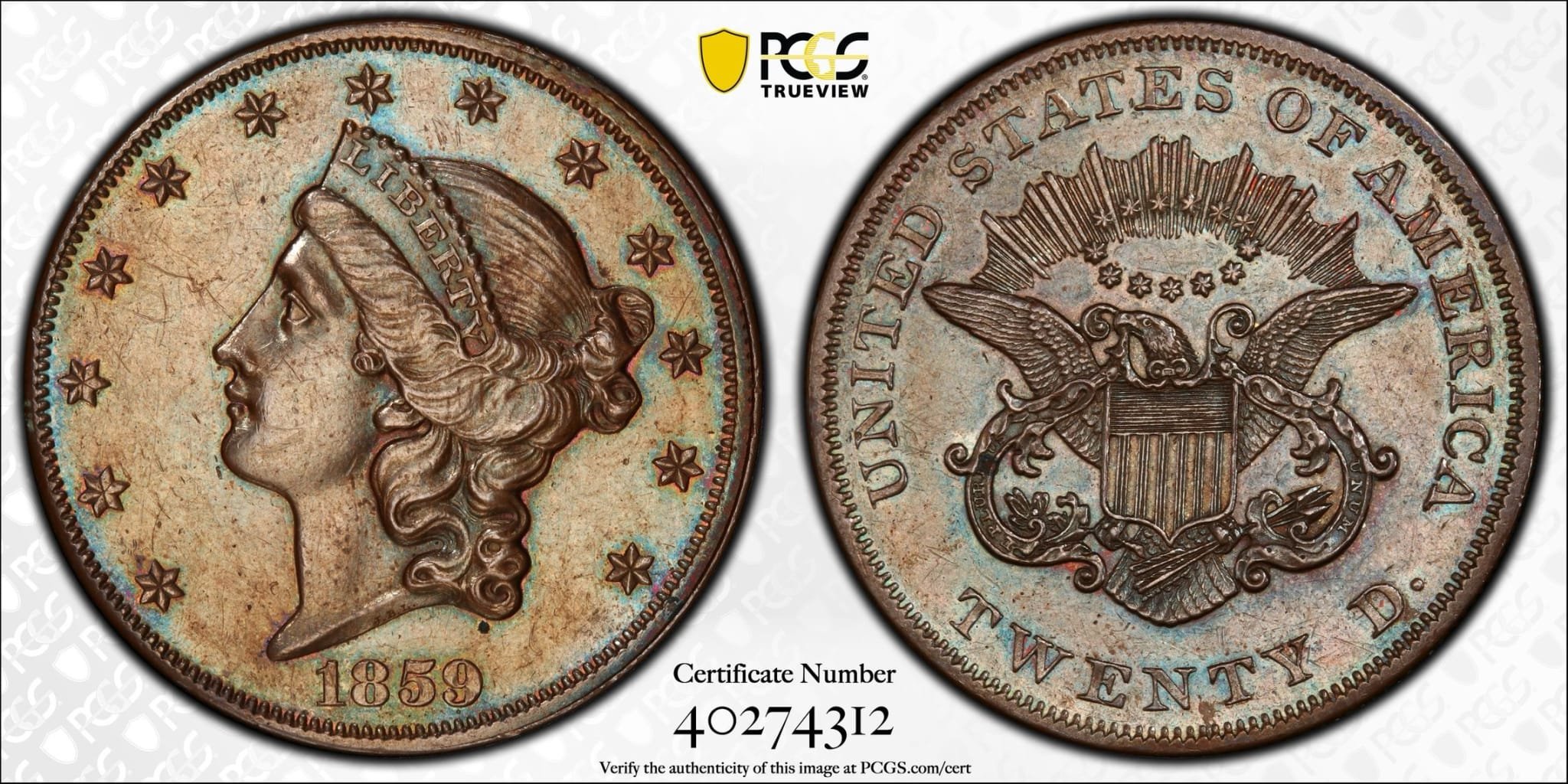 Finest of three known J-263 with one in a museum. PCGS Proof 62+ CAC