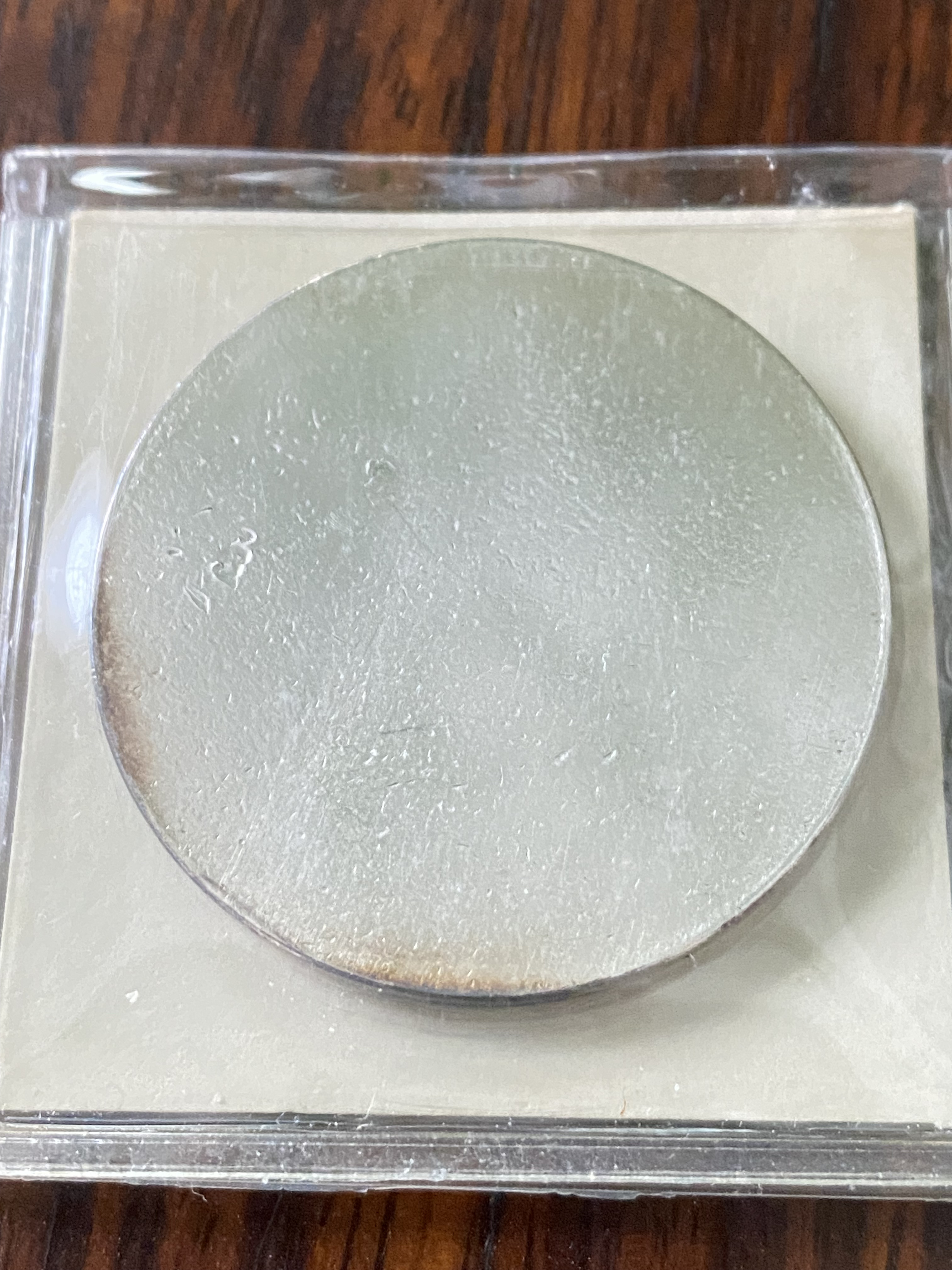 So this blank planchet was included in a lot I bought back in the mid eighties I believe. It weighs about 31.1 grams, so is this an early .999 one ounce silver eagle planchet? As you can see, it does have an upset rim.