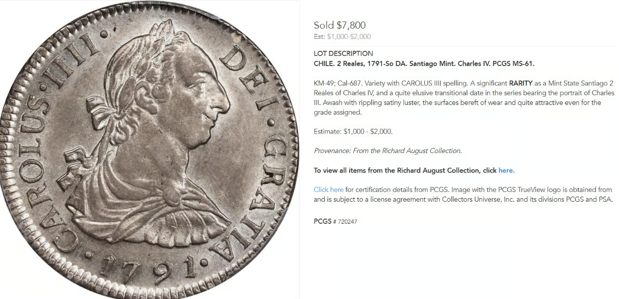 If this was the second installment of the Richard August collection, I was interested in the Mexico Carlos & Joanna P-58 1R which I think sold at a bargain price. (Less than the prior Heritage sale like 15 years ago.) Second coin was the 1760 Guatemala 1/2R.