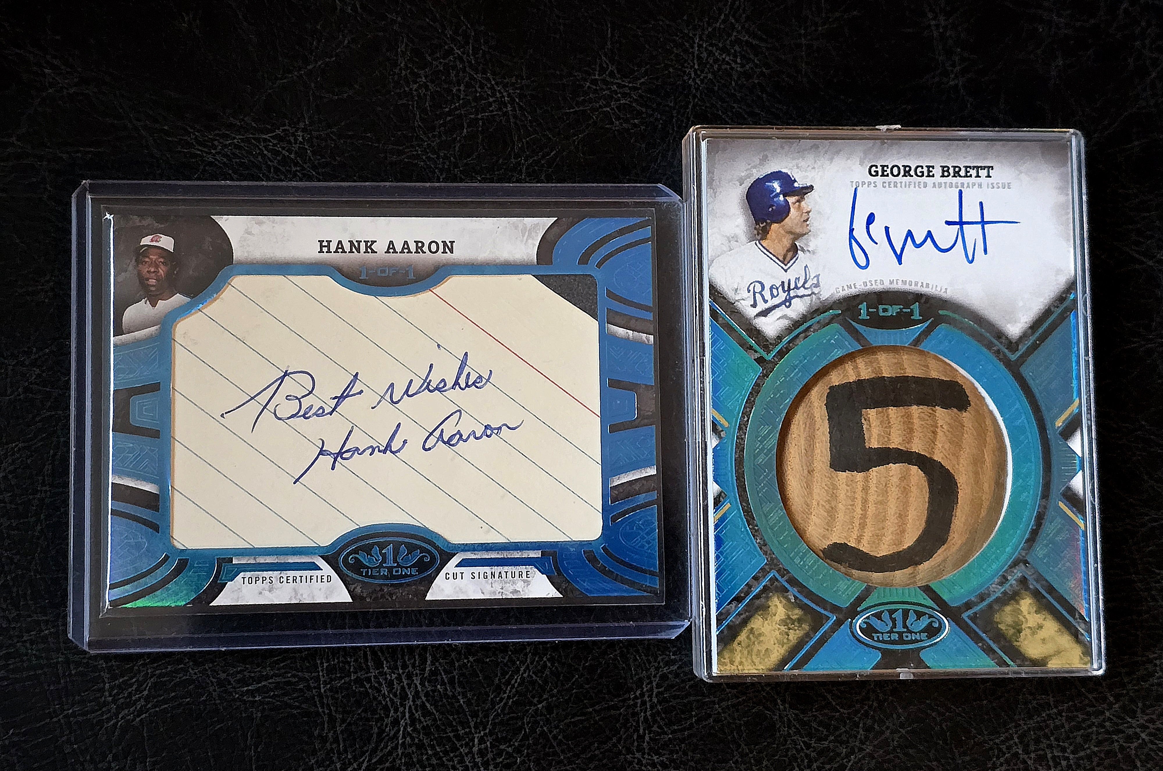 1 of 1 Aaron Cut Auto and a 1 of 1 George Brett Auto/Bat Knob.