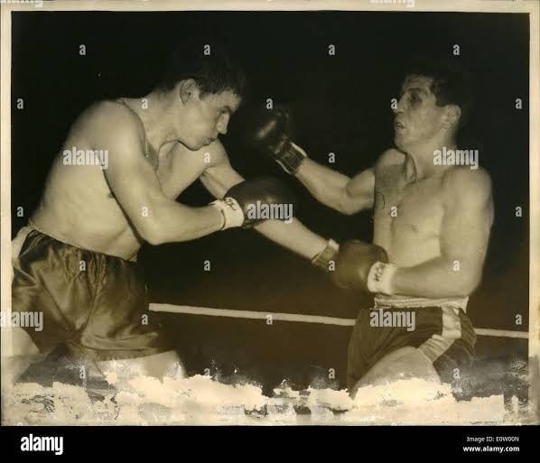 On October 11, 1960 at Empire Poll, Wembley, London, England British middleweight champion Terry Downes fought Joey Giardello in the featured match. Downes prevailed winning a ten round decision. Joey Giardello is a legend in the sport, all-time great middleweight, he was an Italian from New York, tough as leather, had an Iron chin, one of the best ring technicians you'll ever see on film, he could knock you out or box your ears off, he really was the total package.